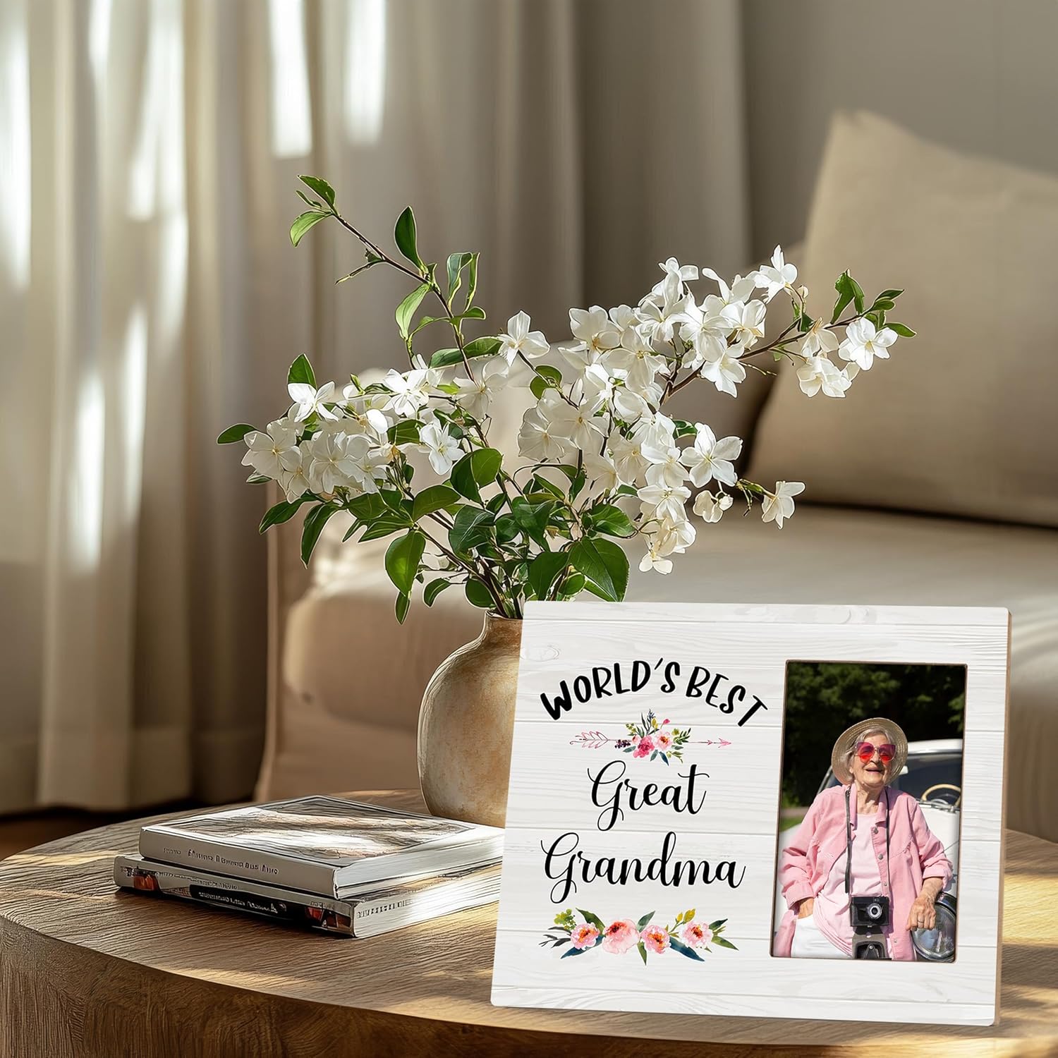 Great Grandma Picture Frame - Great Grandma Gifts, Great Grandma Baby Announcement Photo Frame, World's Best Great Grandma Wooden Frame for Tabletop or Wall Hanging 4x6 Photo