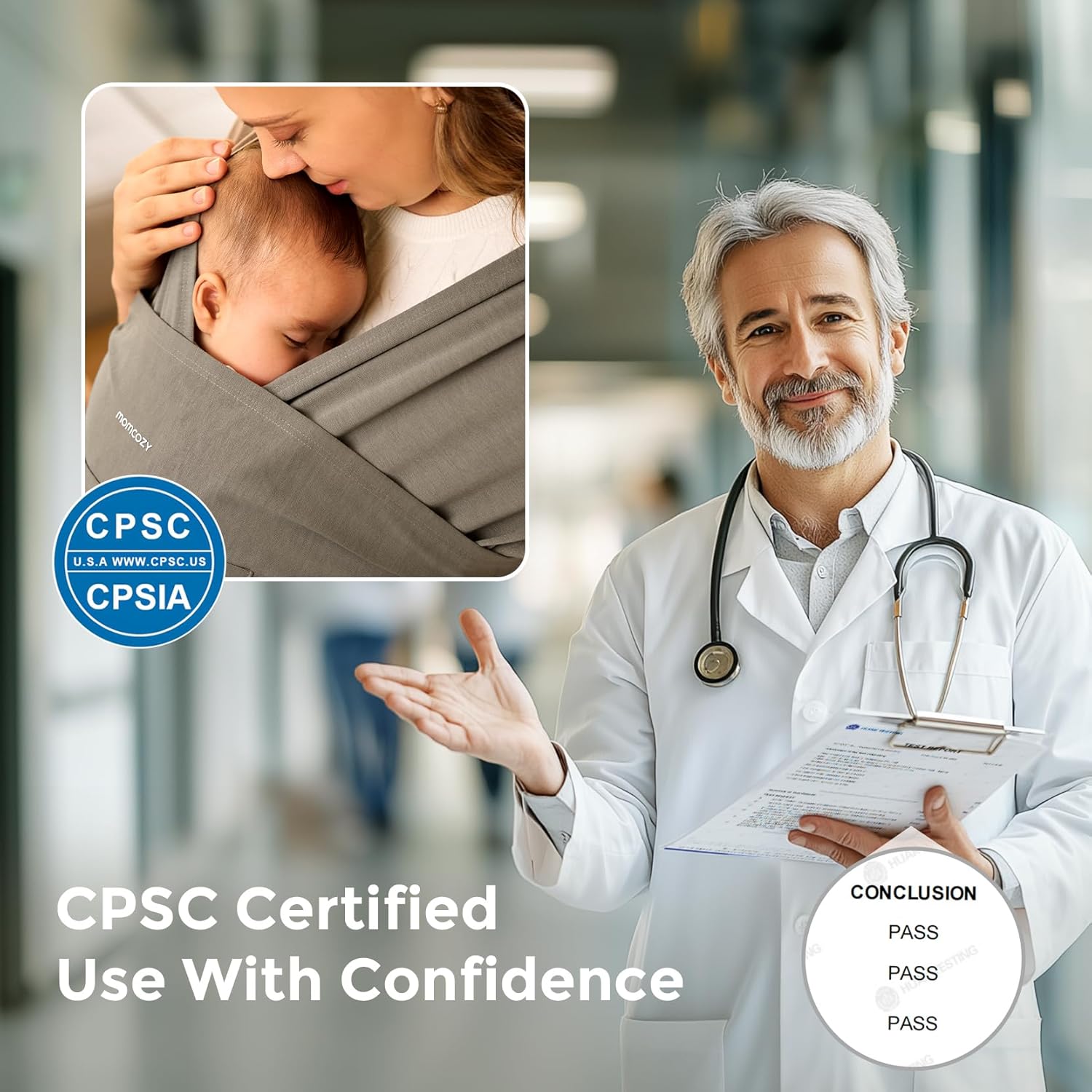 Momcozy Baby Wrap Carrier - Easy to Wear Infant Carrier Slings, Lightweight Hands Free Baby Sling, Adjustable Baby Carriers for Newborn to Toddler 8-35 lbs, Baby Wraps Carrier, Brown