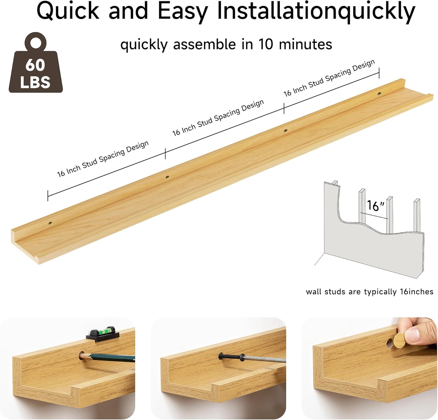 - 3.5" PICTURE LEDGE DESIGN: Ideal for displaying photos, artwork, or collectibles, these feature a thoughtful extremely narrow 3.5-inch width ledge design to prevent items from sliding forward, its mounting holes are spaced 16 inches apart for secure mounting to wall studs uncluttered aesthetic