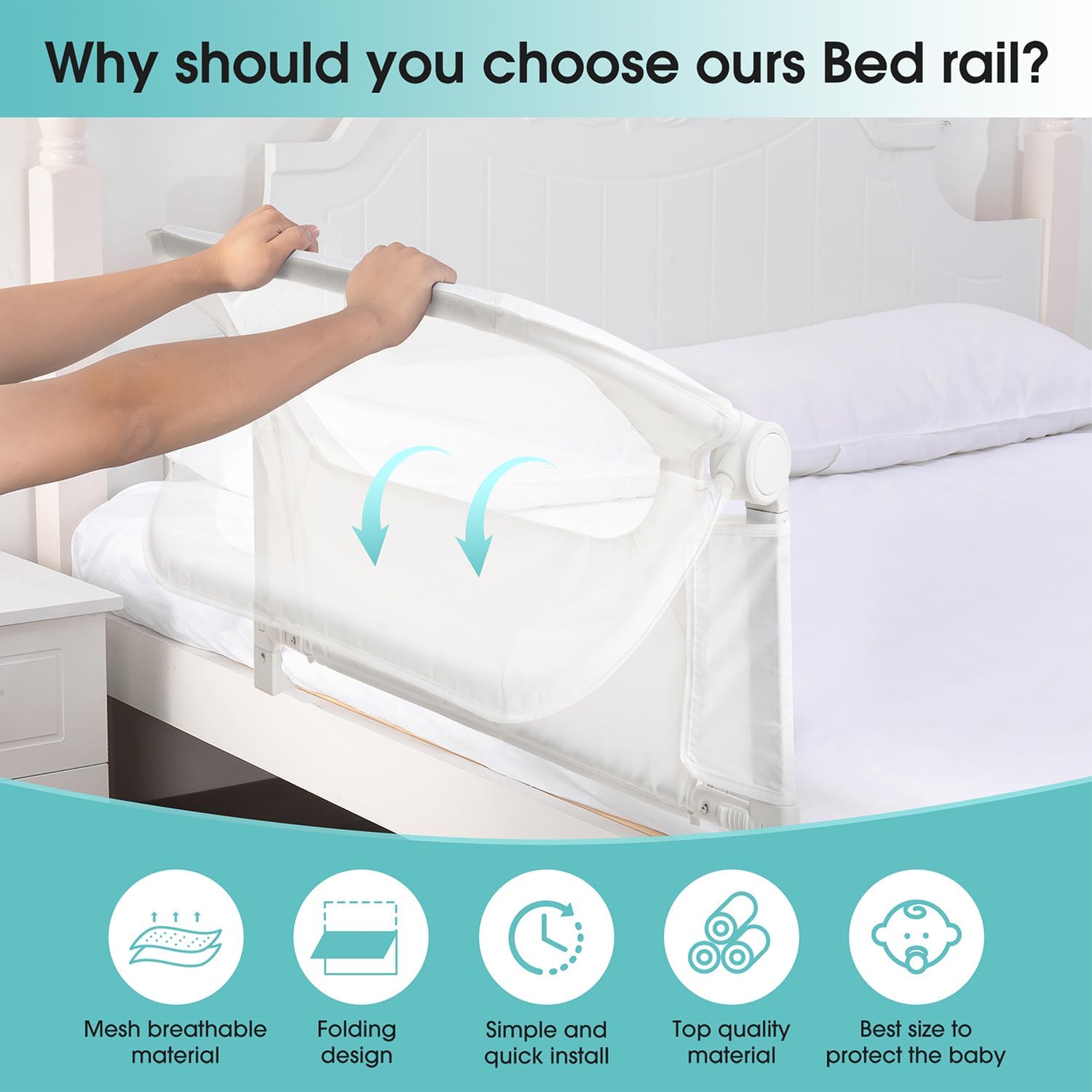 - Mesh Bed Rails:The neutral color and mesh is not only visually pleasing in the room but help breathe easily if toddlers rolls up against it
