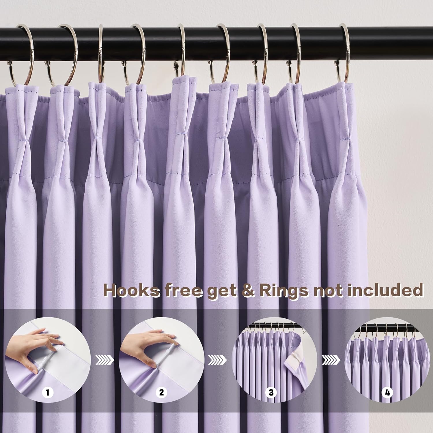 KEQIAOSUOCAI Pinch Pleated Lavender Blackout Curtains 72 Inches Long, Sound & Light Reducing Room Darkening Drape for Girl's Bedroom(Lavender, 2 Panels, W40 x L72)