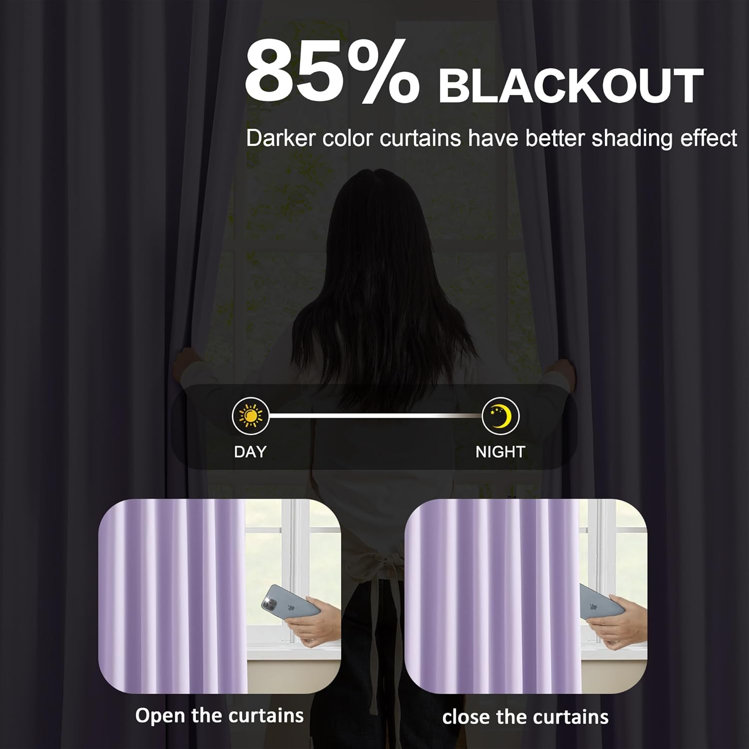 - Room Darkening: Durable polyester fabric without liner. Blackout curtains to impede 85%-95% unwanted light and UV rays(Darker color curtains have better shading effect).