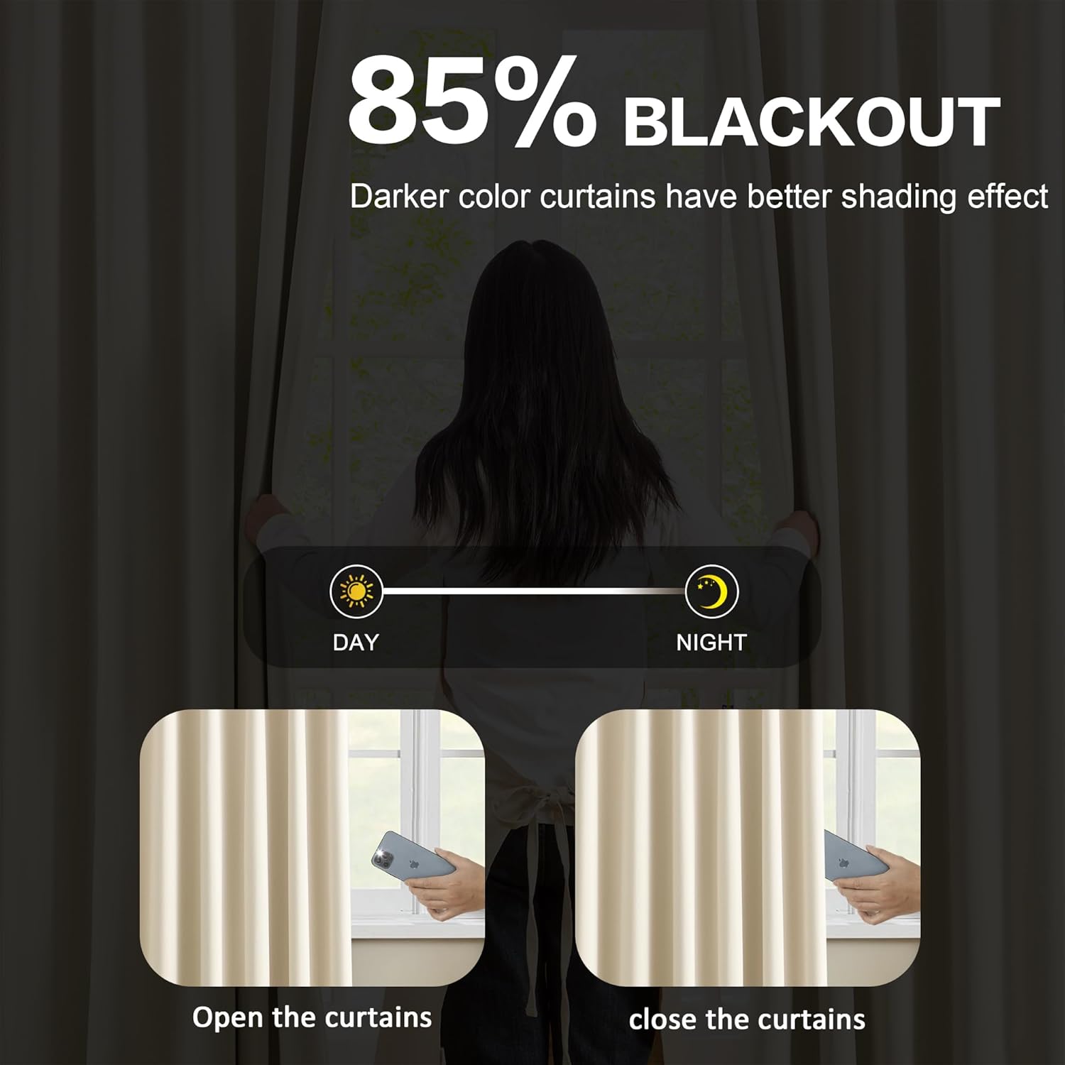 - Room Darkening: Durable polyester fabric without liner. Blackout curtains to impede 85%-95% unwanted light and UV rays(Darker color curtains have better shading effect).