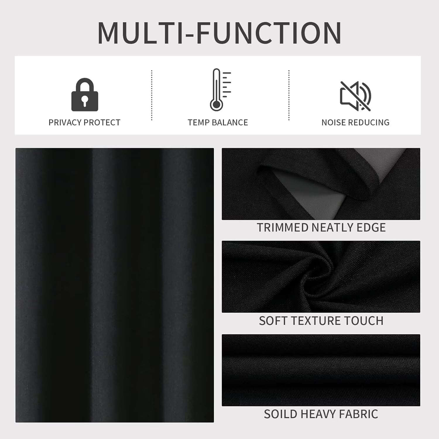 Joydeco Black Blackout Curtains 90 Inches Long, Curtains 90 Inch Length 1 Panel for Bedroom, Thermal Insulated Linen Black Out Curtains with Grommets(100x90, Black)