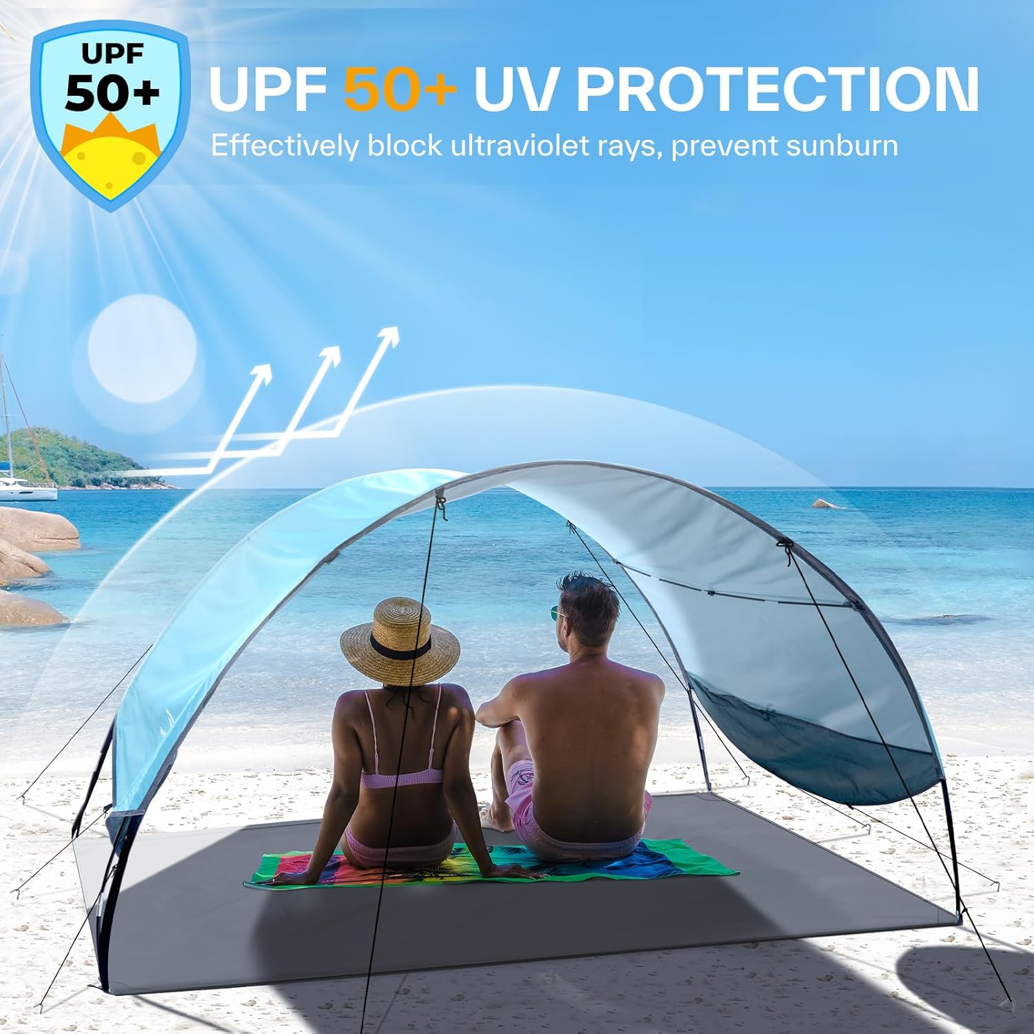 - Compact and Portable: 8×4.5ft beach canopy suitable for 2-3 people, enough space to start a summer sunshine journey with your family and friends. Weigh about 6 pounds, comes with a portable carrying bag easy to carry. Our beach canopy comes with a built-in ground cloth, so you will no longer need to carry an additional blanket for the trip. The beach tent sun shelter is not only suitable for the seaside, but you can also use in the backyard or outdoor while camping.