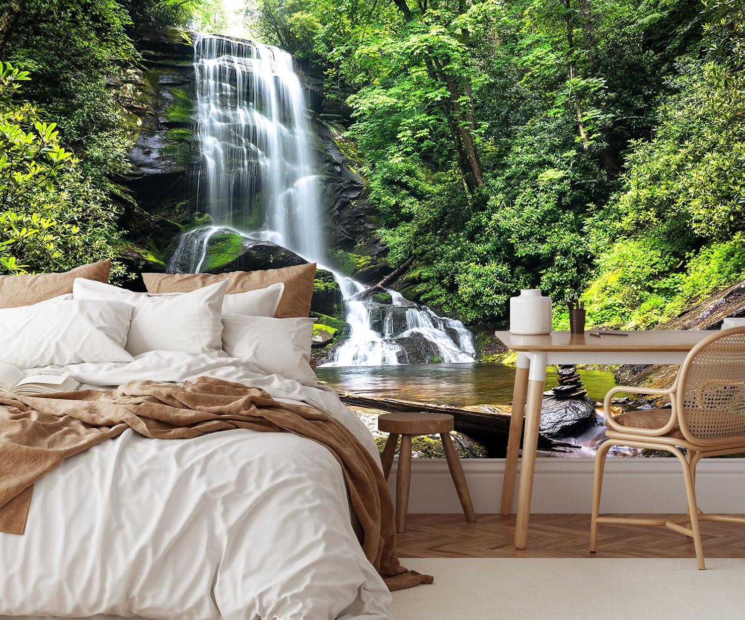 Waterfall Wallpaper Natural Landscape Lake Green Forest Wall Mural for Living Room Bedroom Dining Room Basement(Not Self-Adhesive)