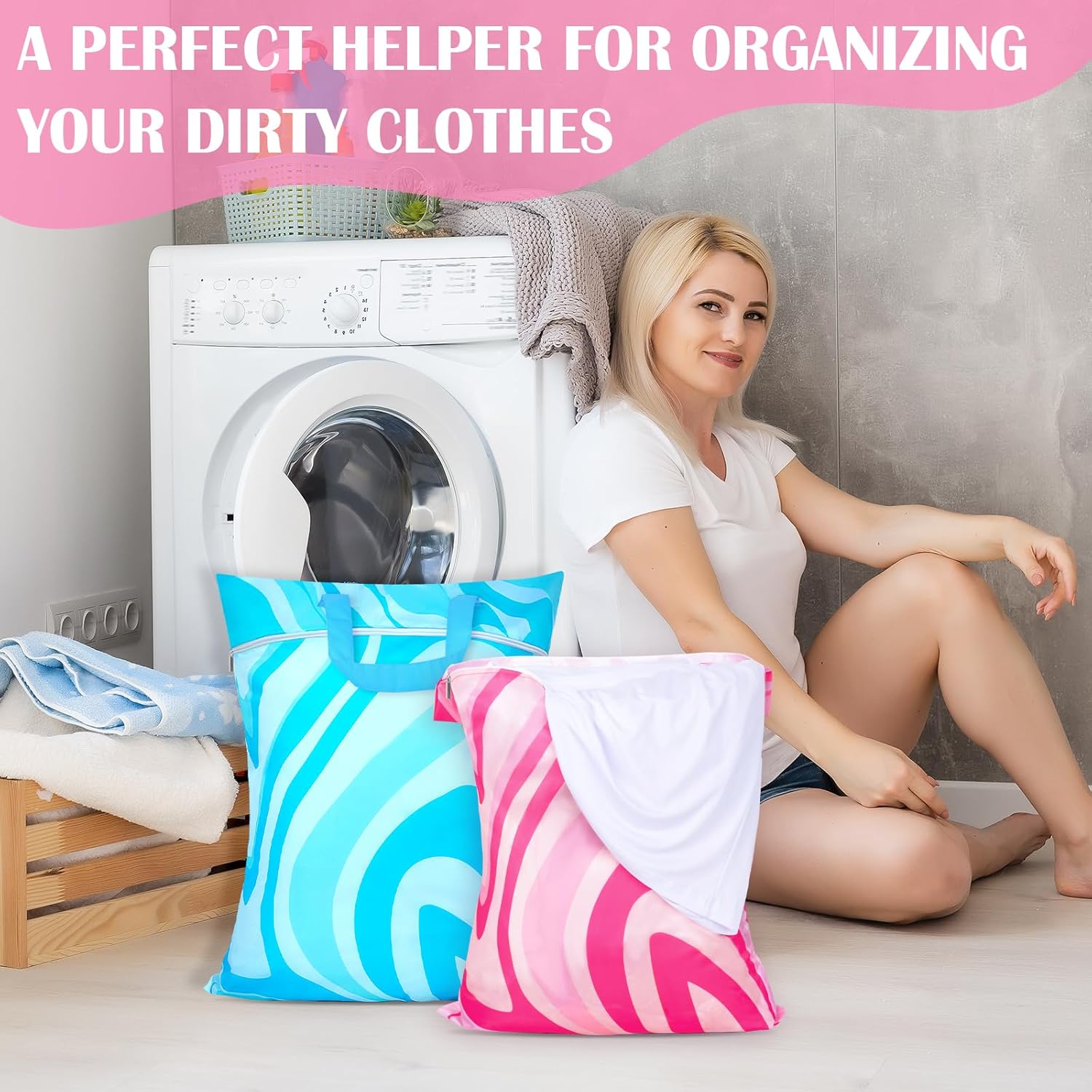 2 Pcs Large Travel Laundry Bag Waterproof with handle Washable Dirty Clothes Bag for Traveling Wet Dry Bag Bathing Suit Workout Bag for Gym Clothes Laundry Wet Clothes Swimming Pool College Dorm