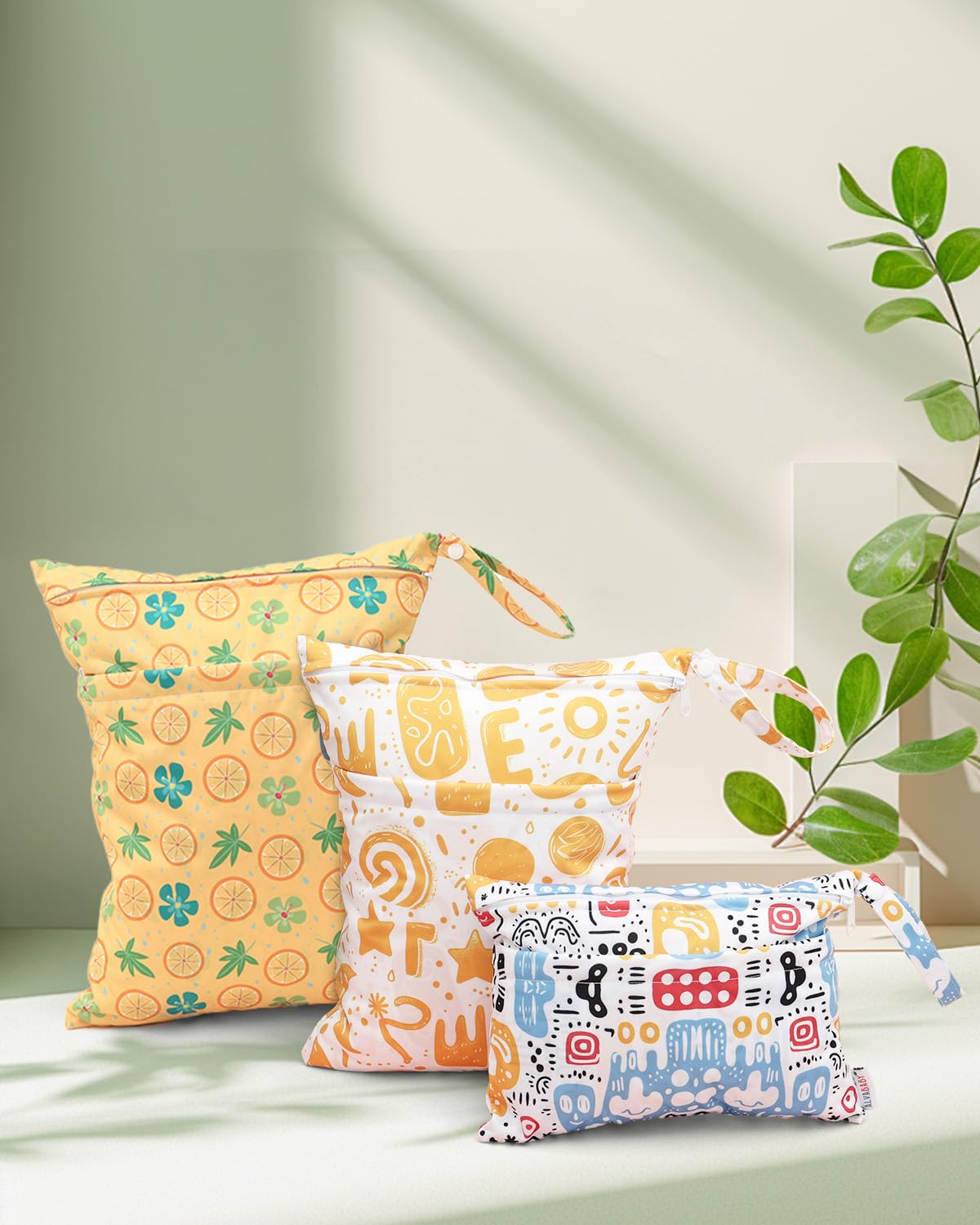 - Fashion , Reusable&Waterproof , High quality -A trim and attractive design. ALVABABY wet/dry bag are made from waterproof 100% polyester, put dirty cloth diapers in a wet bag. Comes with handle for easy carrying or attaching to your diaper bag or stroller.