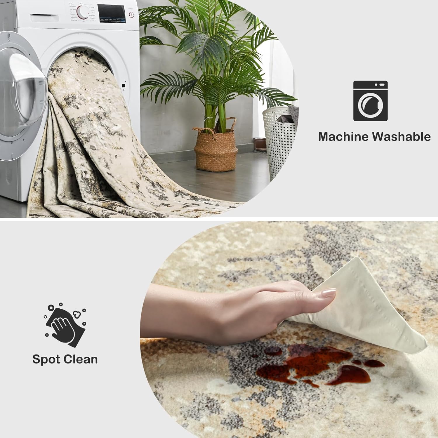 Kelarea Living Room Rug, Modern Abstract Washable Rugs Non Slip Faux Wool Vintage Rug, Non-Shedding Carpet for Living Room, Bedroom, Dining Room, Kids Playroom (Beige, 5' x 7' (Rectangular))