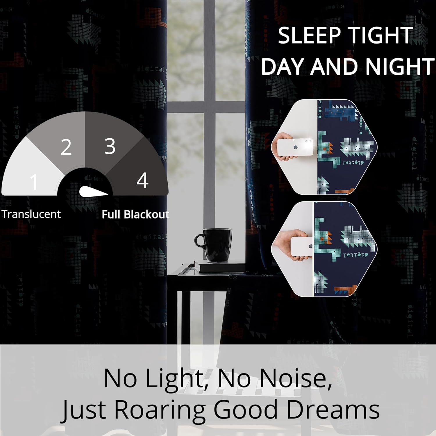 Kids Blackout Curtains - Pixel Dinosaur Curtains, 100% Blackout, 2 Panels, Each W52×L84, Thermal Insulated, Noise Reducing for Kids Bedroom, Bring a Playful and Retro Touch to Your Child’s Room