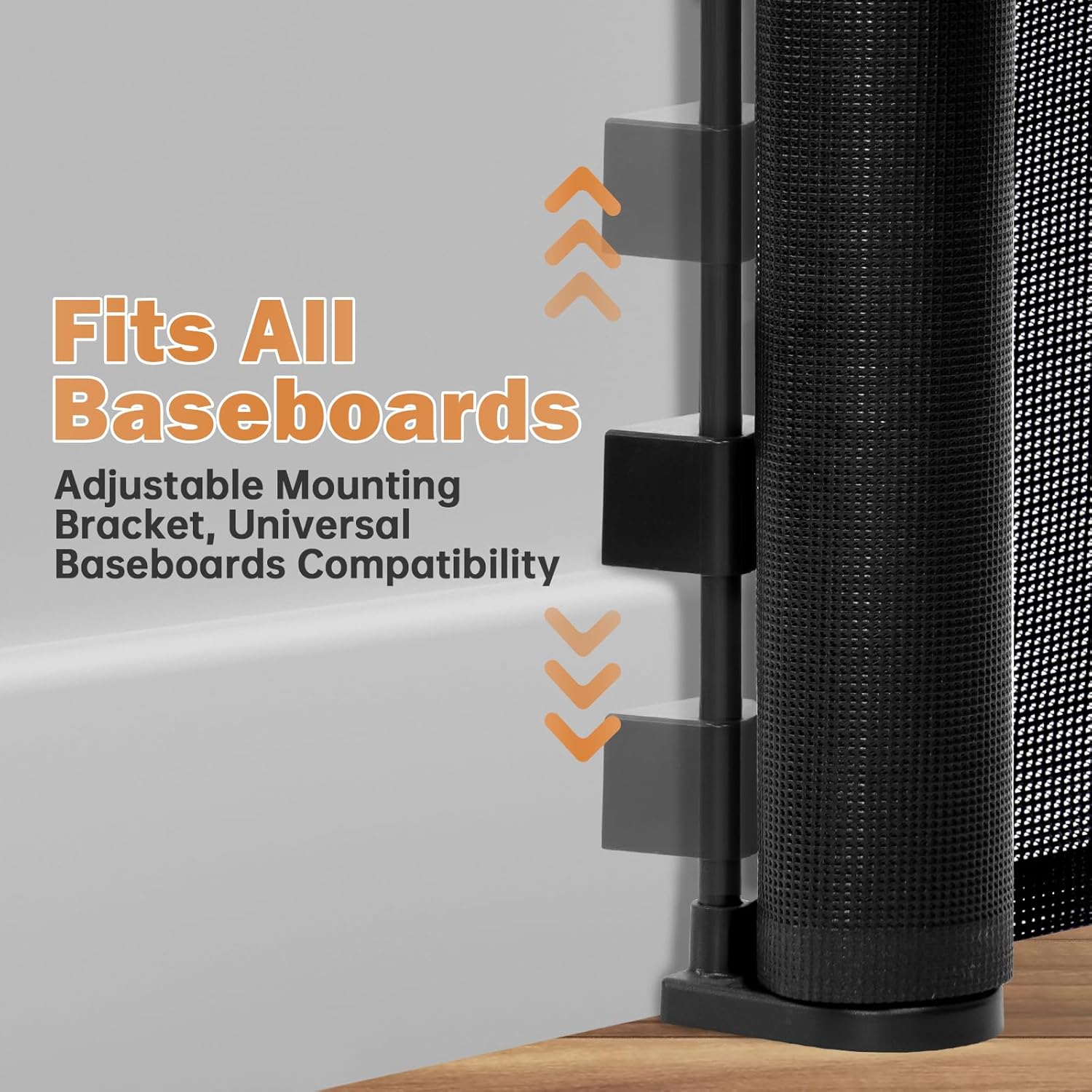 - 【Easy Installation】Installation is easy with adjustable sliding brackets that fit any baseboard without the need for additional shims. Installs quickly in just a few minutes. Note that it should not be installed on drywall and requires drilling, providing a safer option compared to non-drilling baby gates.