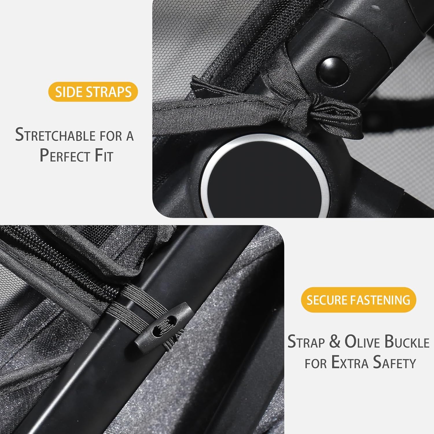 - 【Universal Fit & Secure Coverage】Universal stroller canopy fits most strollers and car seats with adjustable elastic edges and ties. The double fixation system ensures the net stays in place, offering reliable protection during travel