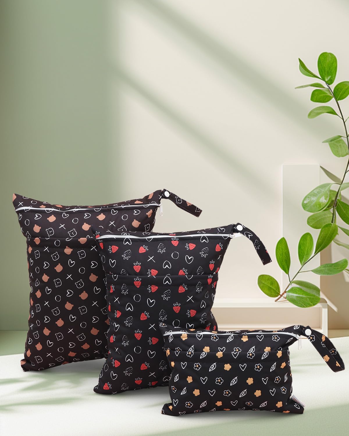 ALVABABY 3 Cloth Diaper Wet Dry Bags Waterproof Reusable with Two Zippered Pockets Travel Beach Pool Daycare Soiled Baby Items Yoga Gym Bag for Swimsuits or Wet Clothes Small Medium Large 3L-SML10