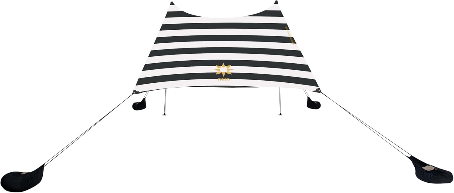 Neso Tents Beach Tent with Sand Anchor, Portable Canopy Sunshade - 7' x 7' - Patented Reinforced Corners (Black/White Stripes)