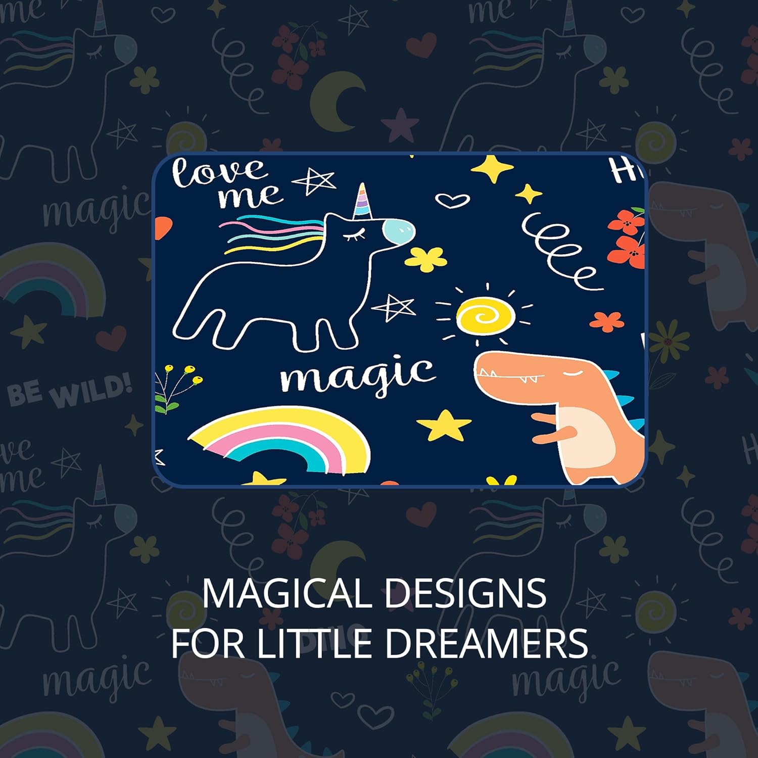 - Charming Dinosaur & Unicorn Design: Features delightful cartoon dinosaur and unicorn patterns, adding a playful and magical touch to your child's room decor.