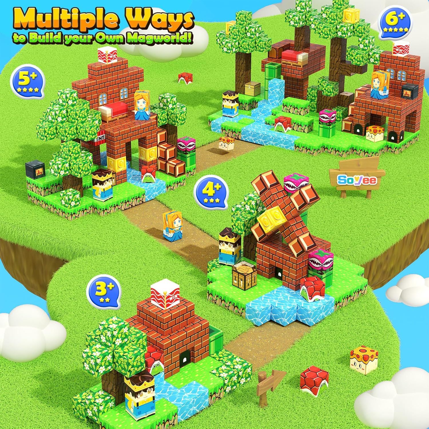 - LET'S GO ON A FOREST ADVENTURE: Kids use the magnetic building blocks to play the role of princess and prince, travel through the forest, fight hostile creatures, wade through the river, and overcome many difficulties in the forest adventure. They also have the opportunity to get gold coins as rewards. Kids can detonate explosives or chop down a tree to form a bridge to more adventures. Using SOYEE's new theme of magnetic blocks to let kids immerse themselves in the forest adventure, it must be a very amazing experience