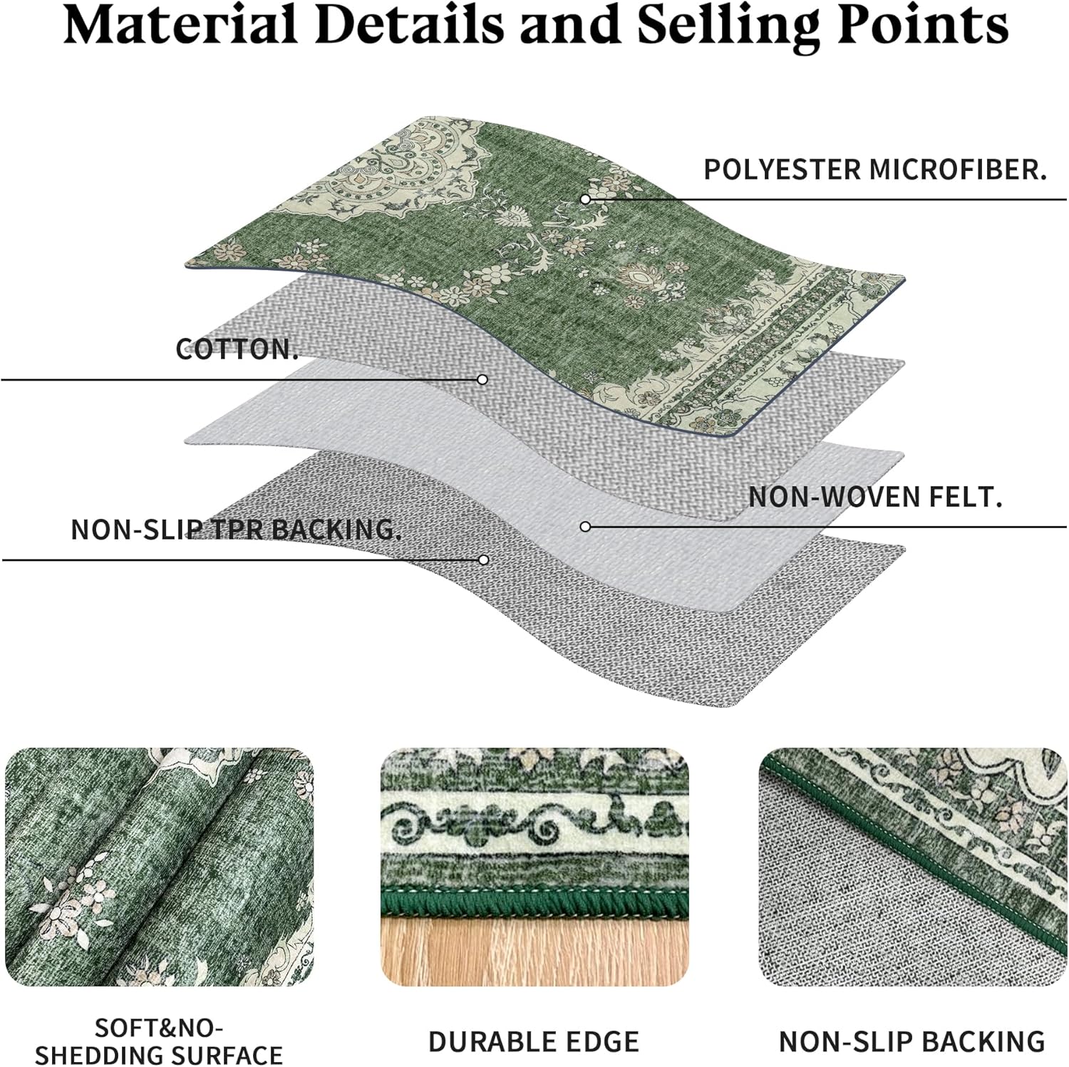 - Non-Slip Backing: The rug uses high-quality TPR elastomer synthetic rubber as an anti-skid backing to protect the safety of you and your family at all times