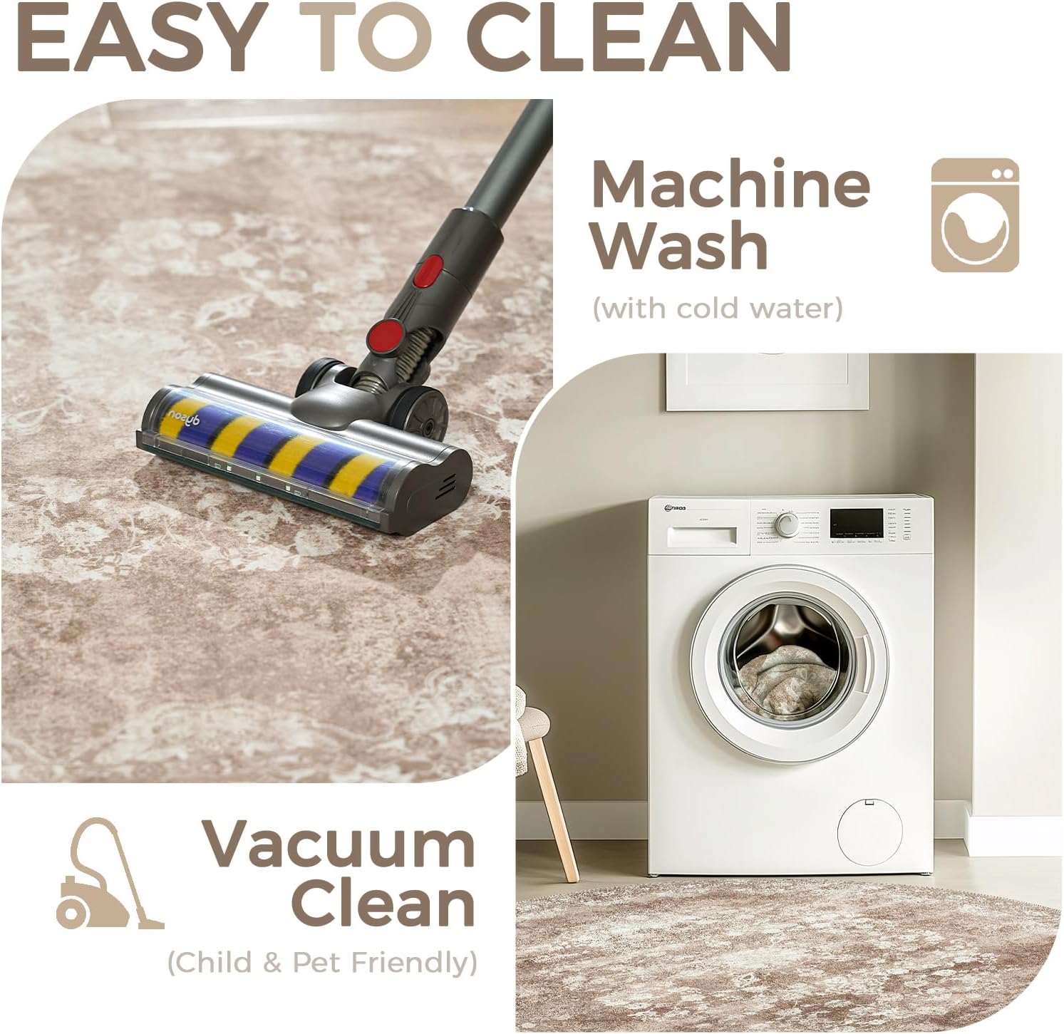 - Easy to Clean:With its stain resistant and easy to clean surface, Jinchan rug requires only minimal effort to keep it looking its best.Please try to Machine wash or vacuum regularly.Use a handheld small vacuum cleaner to remove the dust or hair for daily care. Machine wash with cold water on gentle cycle