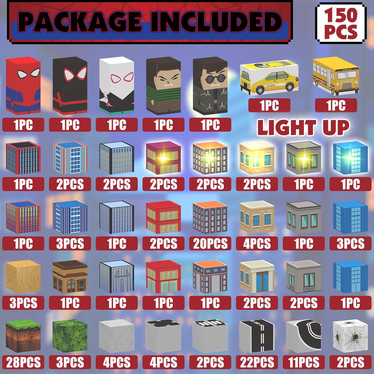 150 PCS Magnetic Blocks Building Toys Set, Spider Toys Light Up Magnetic Building Blocks for Boys Girls Ages 3+, 1 Inch Magnet Cubes STEM Sensory Construction Toy City Themes