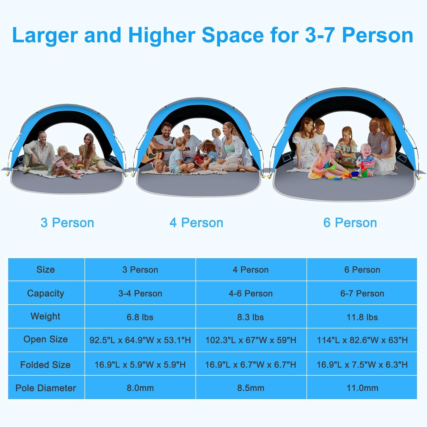 - Square-Top Design for Maximum Space: With dimensions of 114"L x 82.6"W x 63"H, the square-top design of Gorich beach tent provides 30% more internal space and better space utilization compared to traditional dome tents, ensuring ample room for relaxation and gear storage
