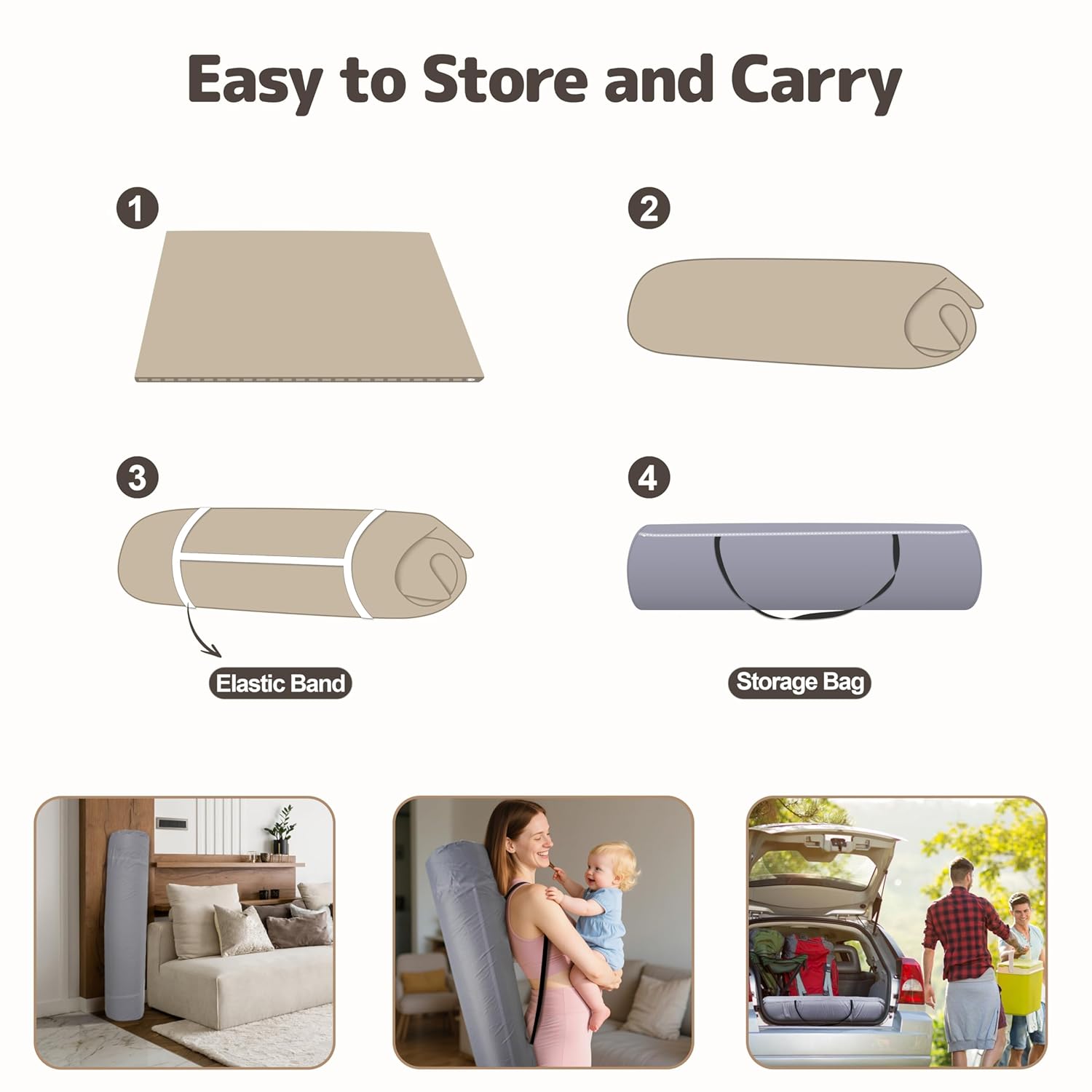 - With Storage Bag - The baby floor play mat includes an exclusive elastic strap and a compact storage bag for easy folding, travel and storage. Fits in a stroller, car trunk or closet - ideal for families on the go