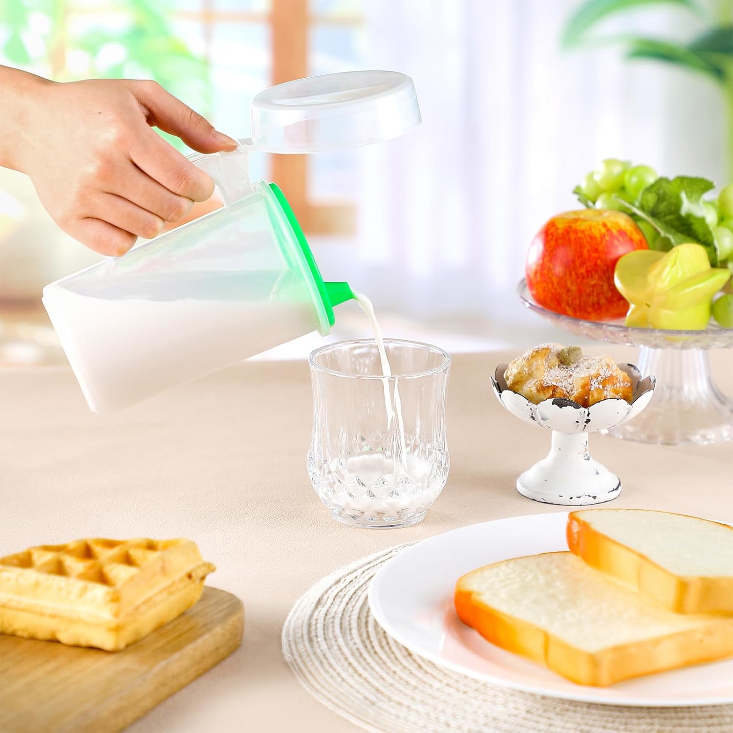 Newtay 12 Pack Early Learning Kids Easy Pouring Mini Pitchers Clear Plastic Pitcher with Lid and Handle Easy Pour Bottles 16 Oz. Jugs with Lids for Classroom Nursery Home (Light Green)