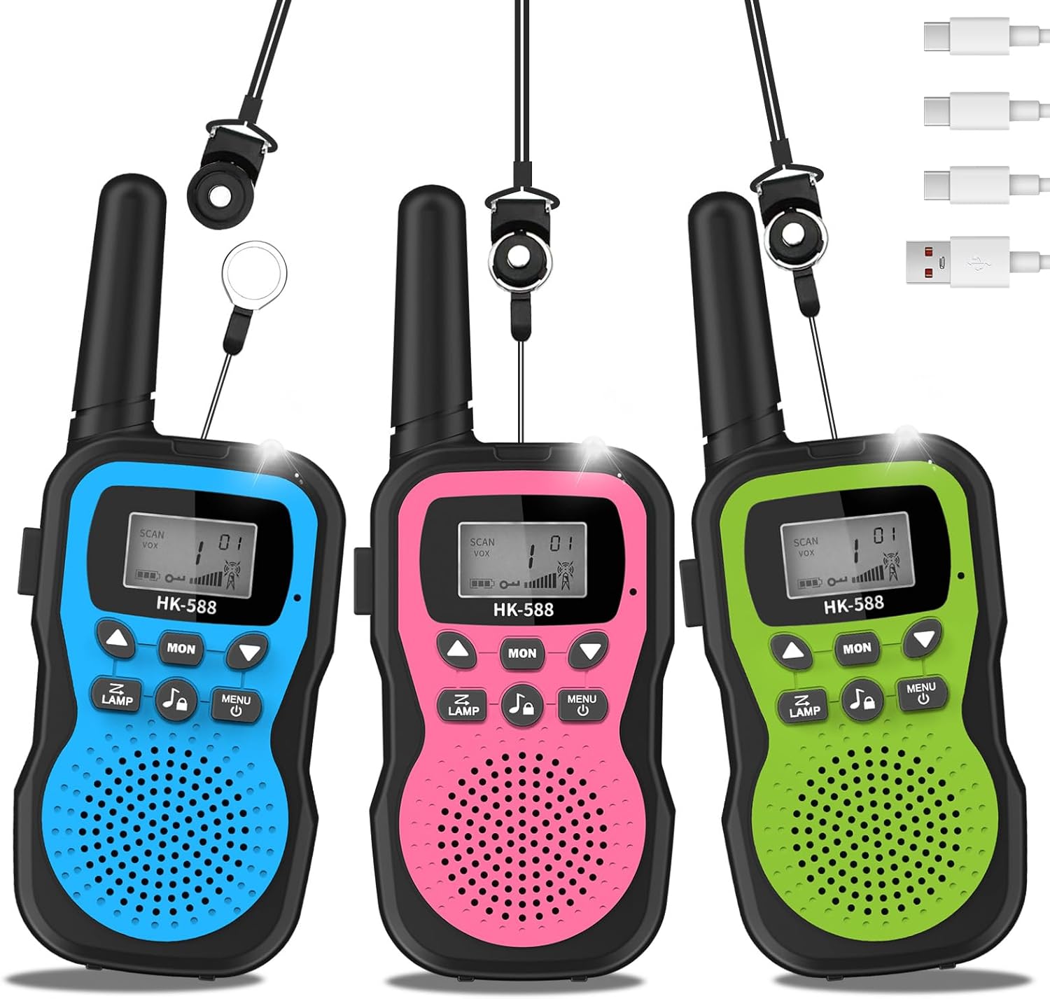 3 Pcs Walkie Talkies for Kids Rechargeable 3 KM Handheld Walkie Talkies Long Range 22 Channel 2 Way Radio Birthday Party Gifts for 3-12 Years Old Girls Boys Outside Adventure Camping Hiking