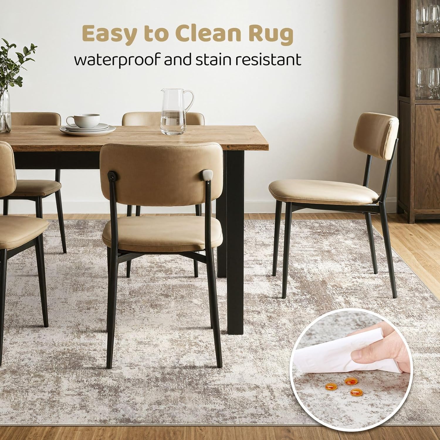 10x14 Area Rugs Living Room: Washable Large Abstract Soft Rug Stain Resistant Indoor Floor Non-Slip Accent Carpet for Women Modern Home Enthusiasts Aged 25-45 - Bedroom Nursery Playroom- Beige Brown