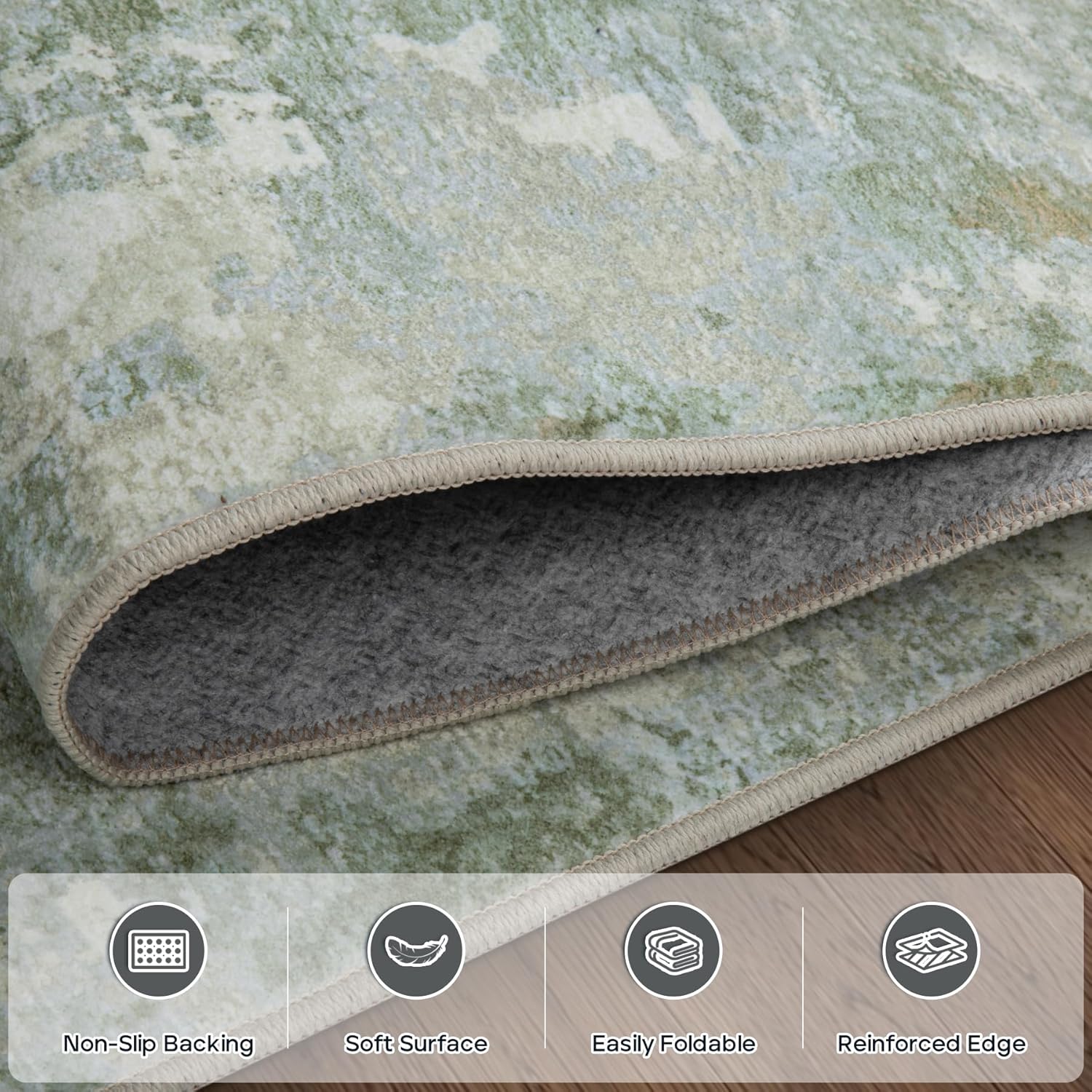 10x14 Area Rugs Large Living Room Rug Washable: Modern Abstract Rug Indoor Modern Carpet Non Slip for Dining Room Bedroom Nursery Home Office Green