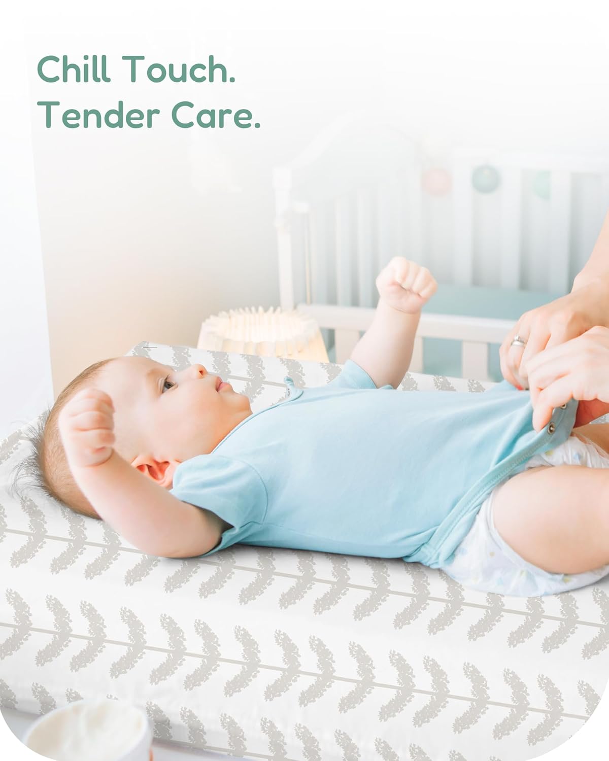 - 2-Color Design: This TotChill changing pad cover set features two adorable colors, perfect for both boys and girls. Designed to fit standard changing pads (32” x 16” x 5”), it adds a cute touch to your baby’s space.