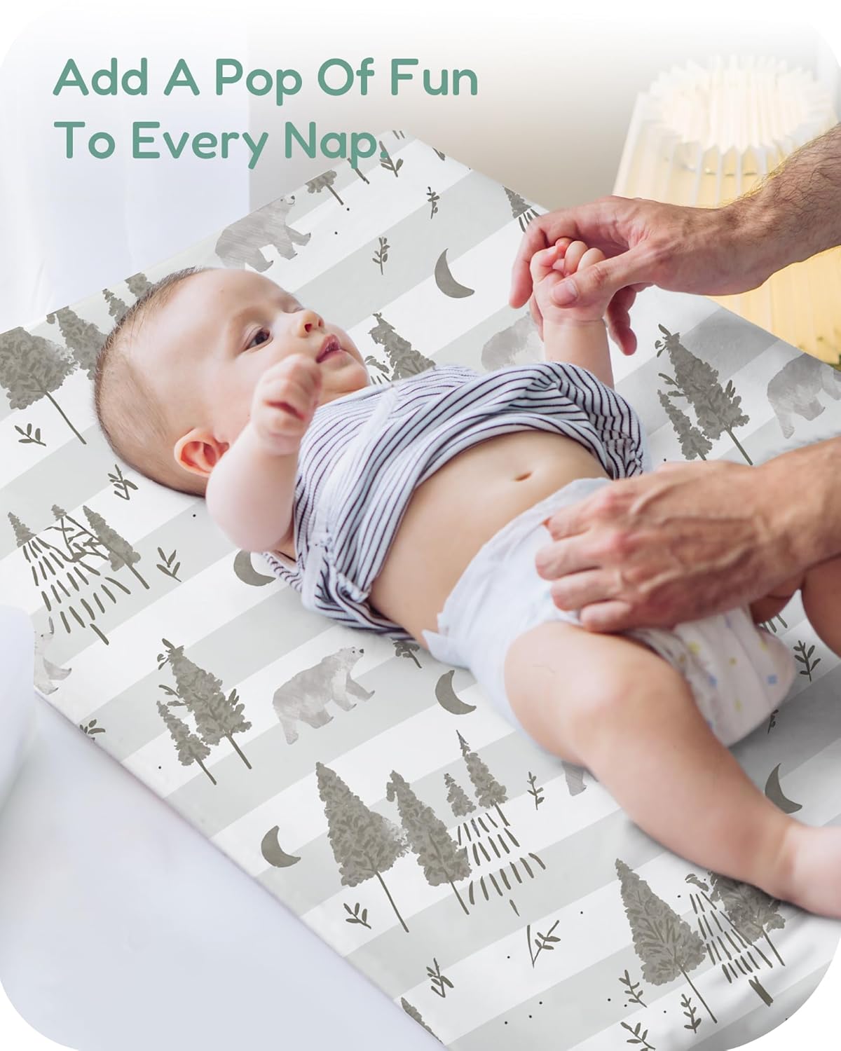 - Secure 360-Degree Elastic Fit: Designed with fully encased 360-degree elastic, this baby changing pad cover fits snugly around your changing pad, preventing slipping or shifting during diaper changes, providing a stable and secure surface for your baby.