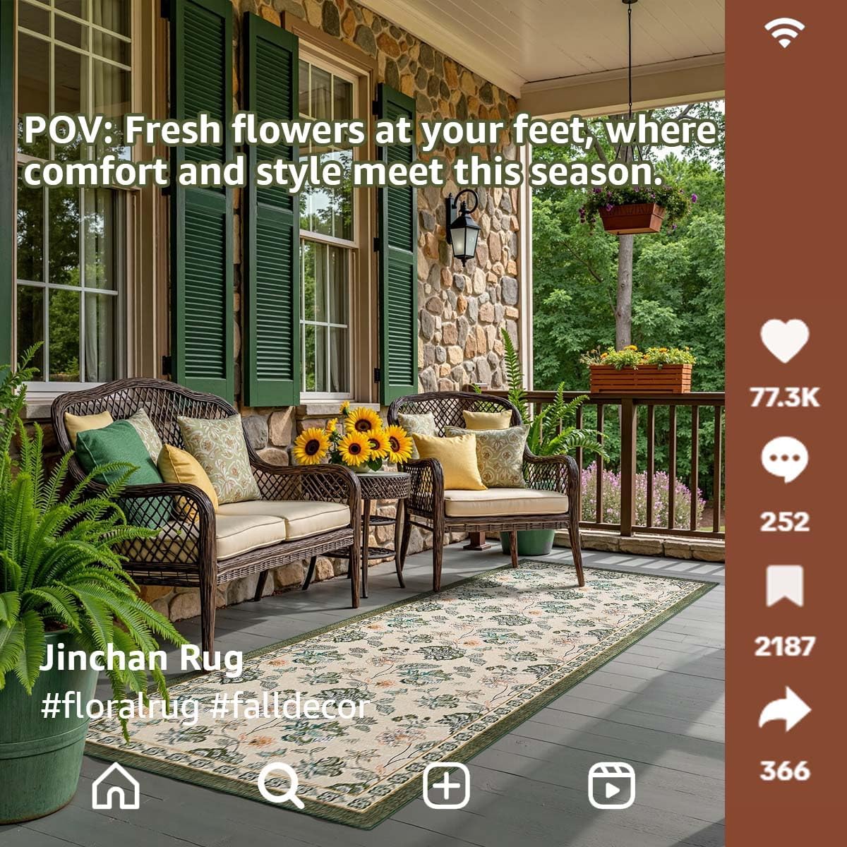 - Floral Vintage Charm: Layers of lush botanical florals framed by an ornate border bring timeless American vintage elegance to your home. The soft cream base and warm floral tones create a welcoming mood—like stepping into a sunlit garden filled with stories.