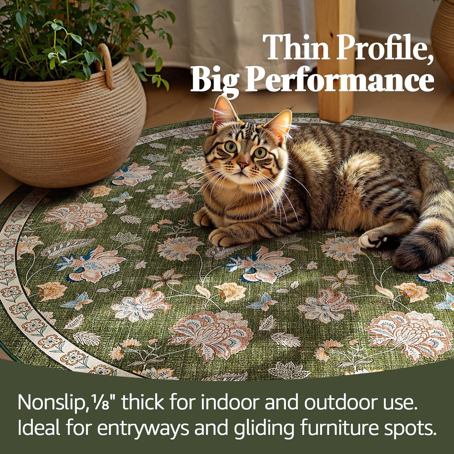 - Slim, Secure & Floor-Friendly: At just 1/8″ thick, this lightweight rug slips easily under doors and furniture while its built-in non-slip backing keeps it firmly in place. Perfect for high-traffic areas, it offers style and stability without bulk.
