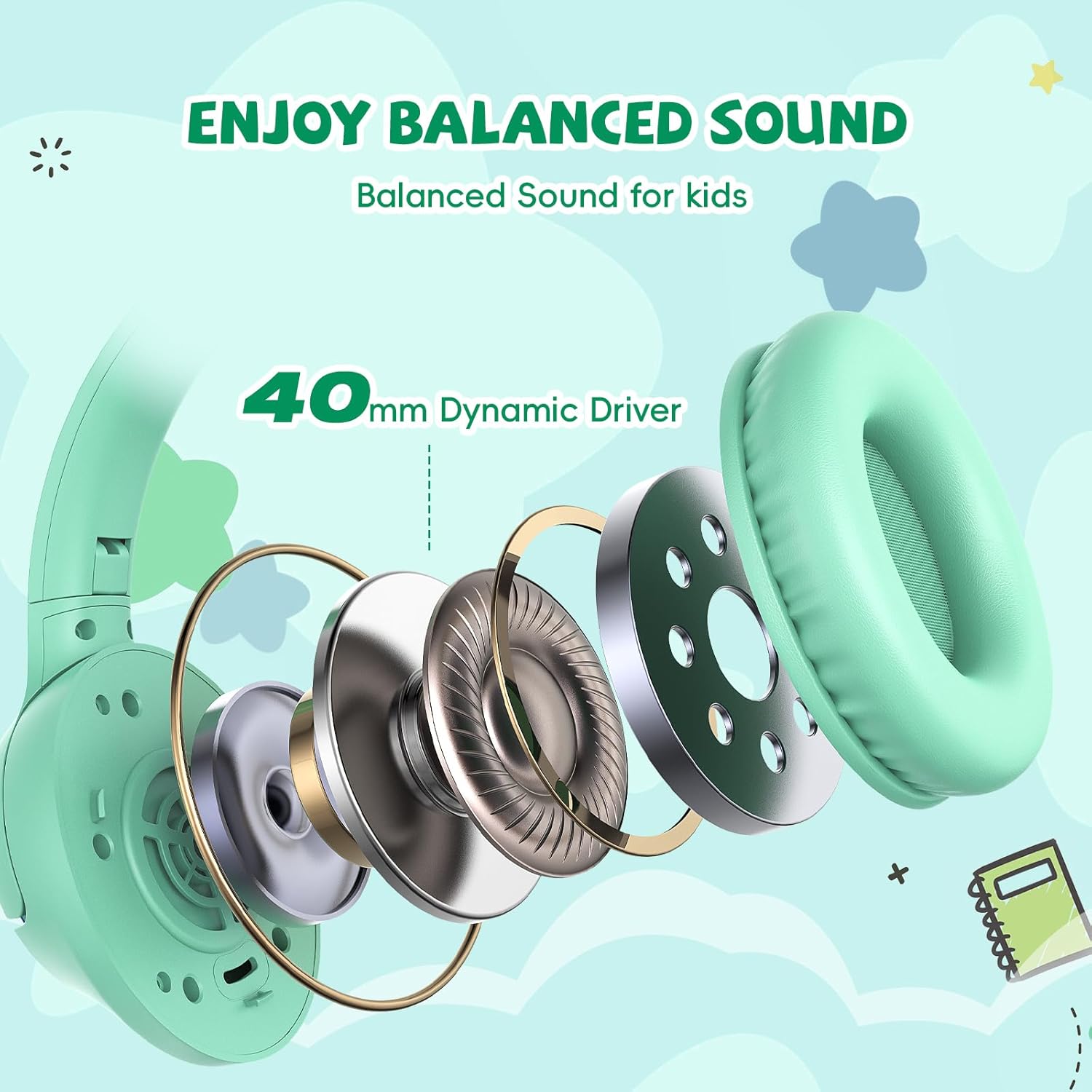 - 【Safe & Clear Listening】85dB/94dB volume-limiting of these kids headphones for school travel is adjustable for different environments (85dB for study mode, 94dB for travel mode), ensures safe listening levels, protecting children's sensitive ears during daily use and preventing long-term hearing damage