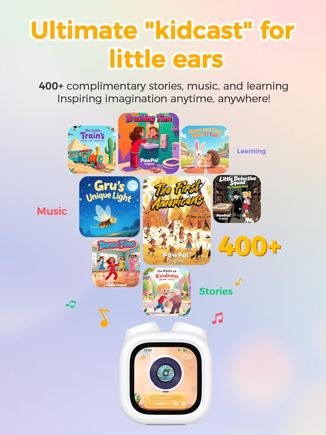 - Not just an alarm clock: It can also serve as a kids' player, 400+complimentary stories, music, and learning, Inspiring imagination anytime, anywhere!