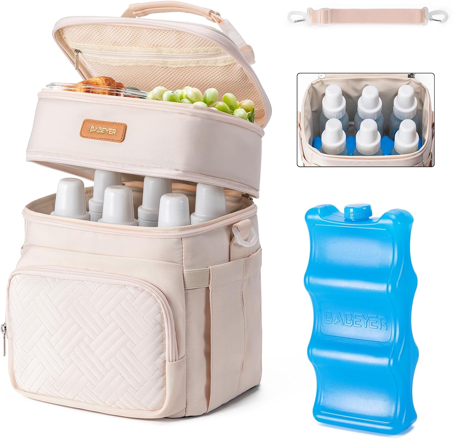 - Smart Double-Layer Organization & Versatile Use:Size of the breastmilk cooler bag is 9.2"D x 8.5"W x 11.2"H,maximize storage with dual compartments holding 6 bottles (9 oz each) and wearable pump or snacks. Perfect as a breastmilk cooler bag, daycare lunch box, or portable snack organizer. Keep essentials separated and secure for on-the-go convenience.