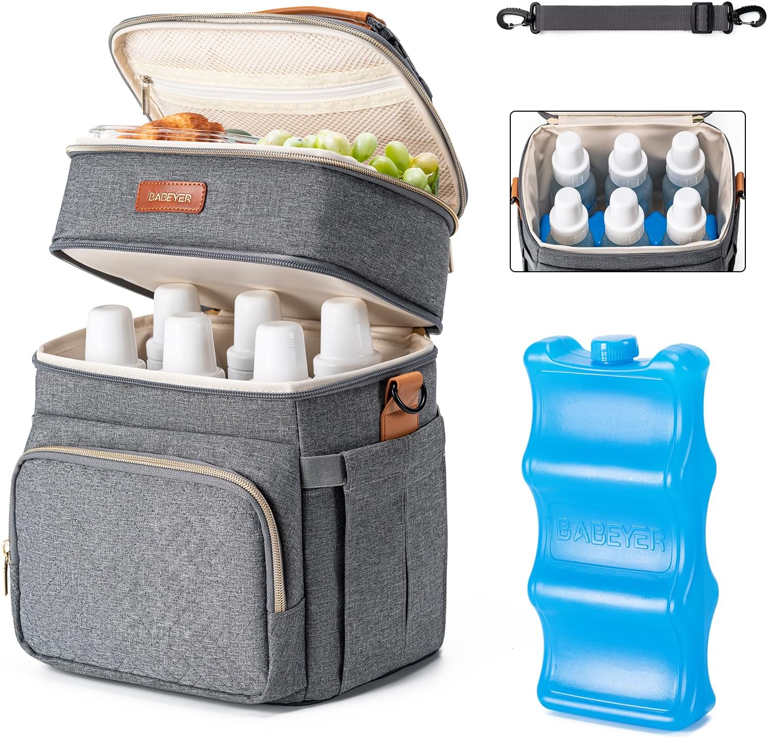 - Smart Double-Layer Organization & Versatile Use:Size of the breastmilk cooler bag is 9.2"D x 8.5"W x 11.2"H,maximize storage with dual compartments holding 6 bottles (9 oz each) and wearable pump or snacks. Perfect as a breastmilk cooler bag, daycare lunch box, or portable snack organizer. Keep essentials separated and secure for on-the-go convenience.