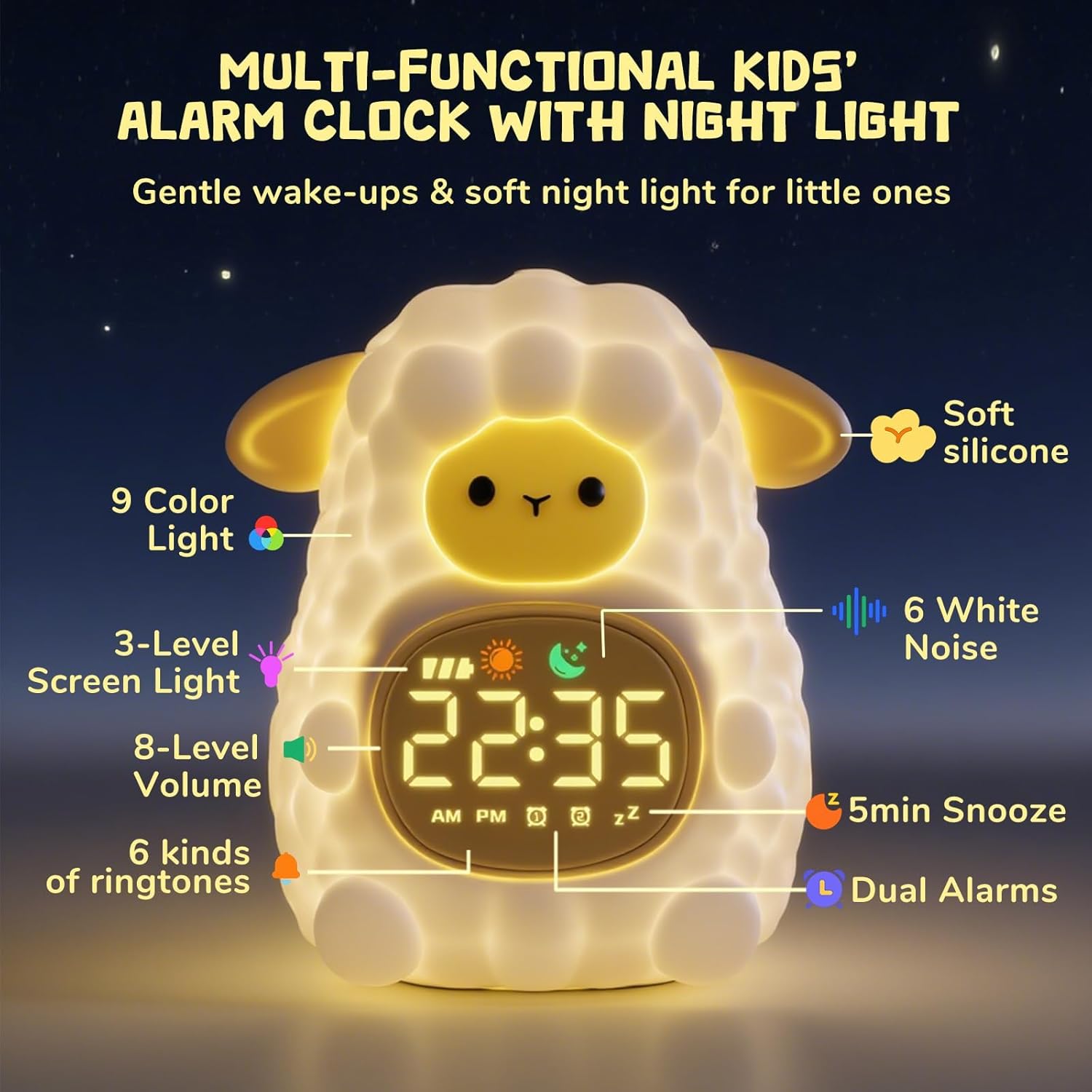 - Child-Friendly Controls: Easy one-tap snooze function (up to 3 times), simple alarm shut-off, and 3-level adjustable display brightness for comfortable nighttime viewing.