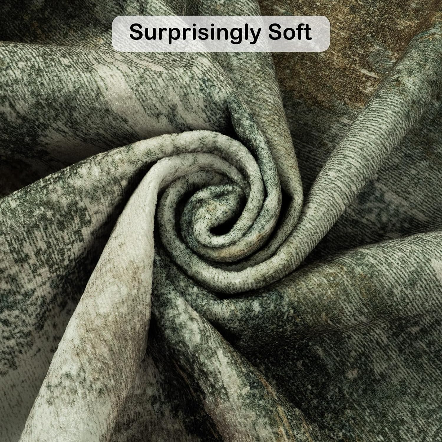 Kelarea Living Room Rug, 9x12 Rug Modern Abstract Washable Rugs, Green Vintage Low Pile Carpet, Non Slip Large Rugs for Bedroom, Dining Room, College Dorm, Home Office