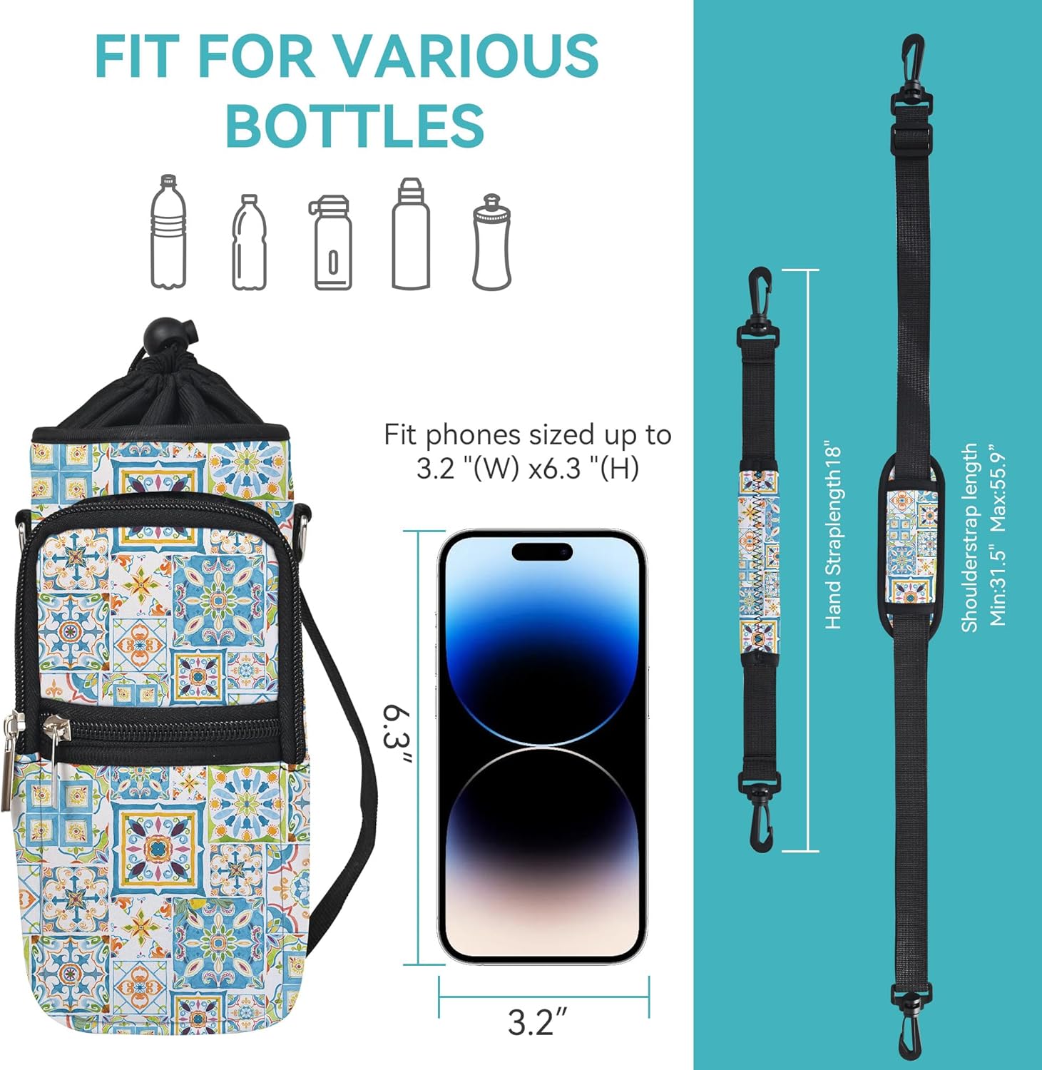 icolor Water Bottle Carrier Bag with Strap 25/32/40 oz Crossbody Bottle Holder with Phone Pocket Sling Sleeve Insulated Neoprene Water Bottle Pouch for Walking Travelling