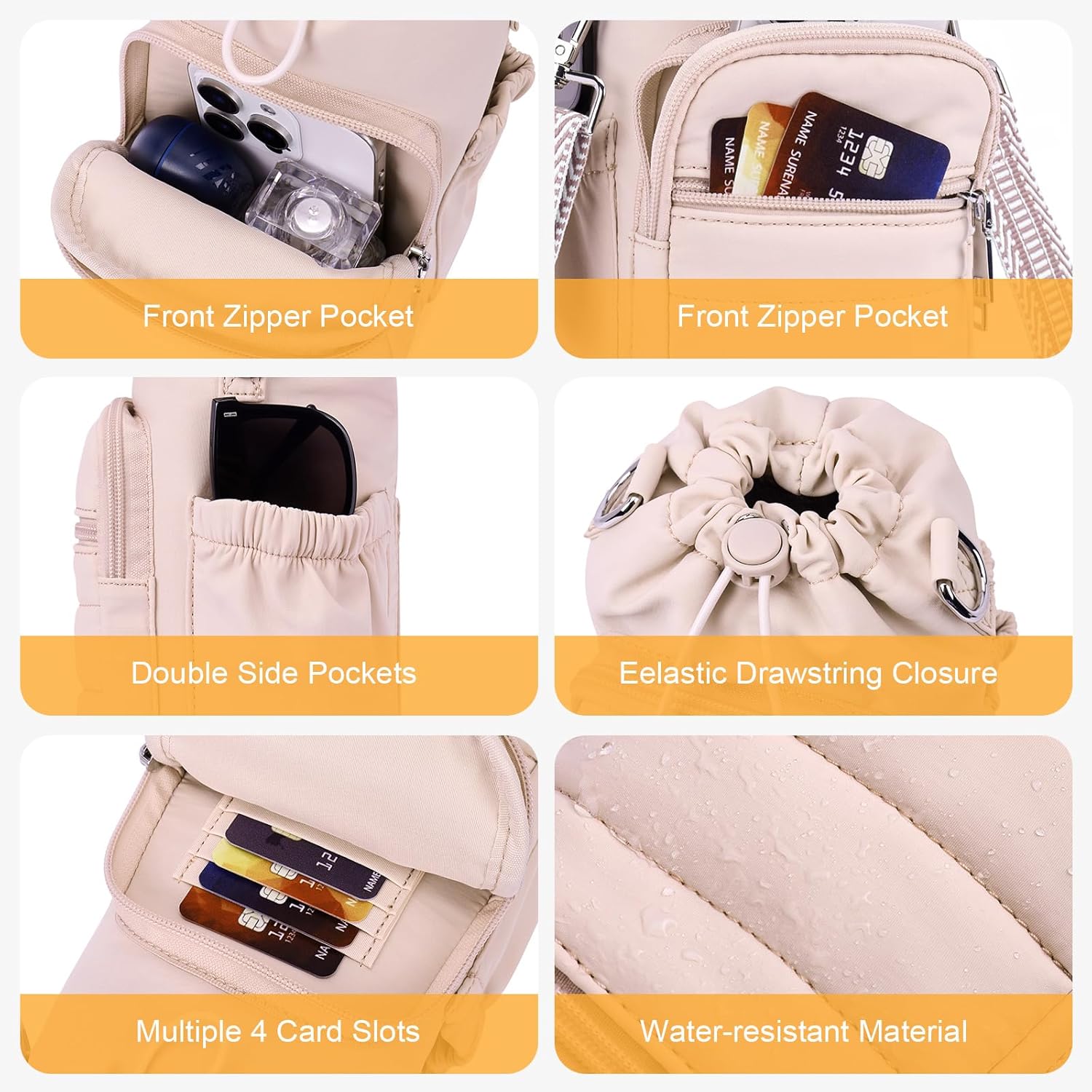 • 【 Functional Storage for Daily Essentials】 More than just a bottle holder—water bottle crossbody bag includes a zippered front pocket that fits large phones like the iPhone Pro Max, plus 4 built-in RFID card slots. Two side pockets easily store sunglasses, sanitizer, or other small essentials, making it perfect for everyday use.