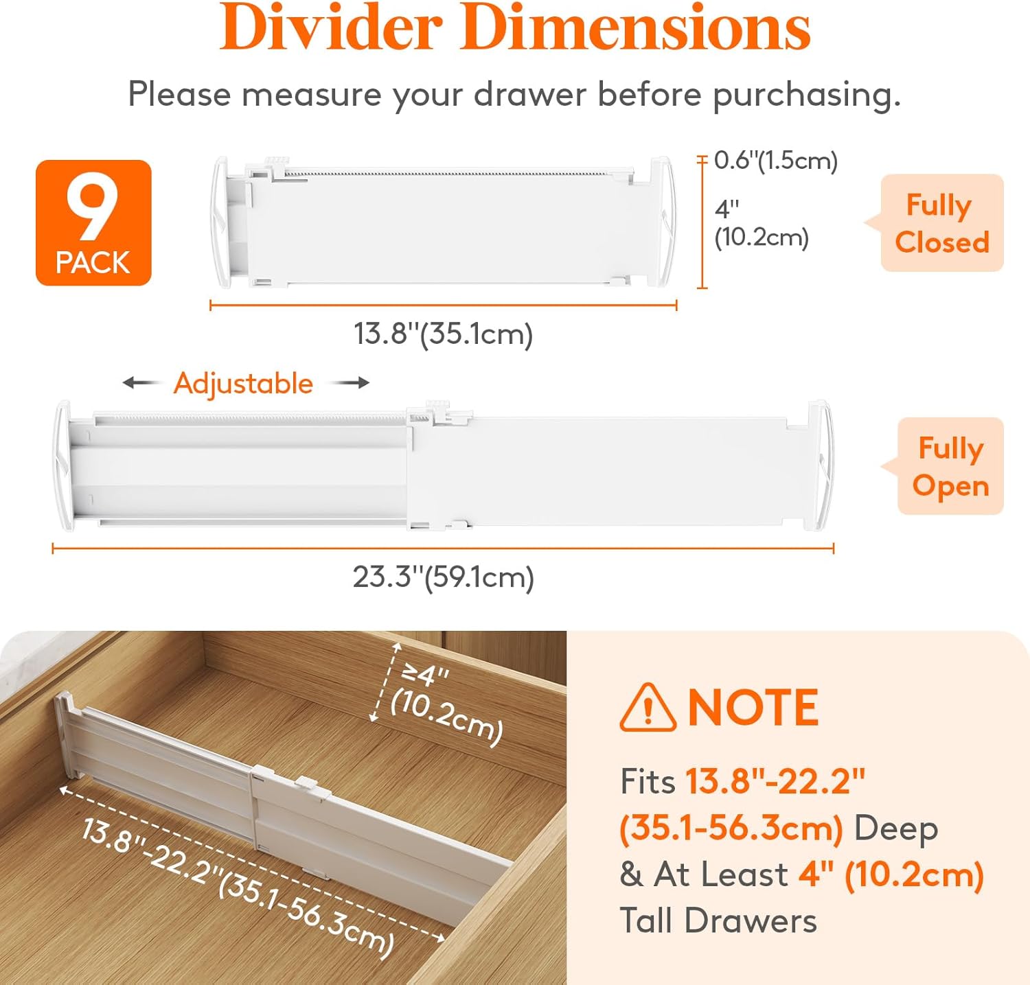 - Adjustable Length: These drawer dividers boast a height of 4 inches (10.2 cm) and a recommended usage length from 13.8 to 22.2 inches (35.1 - 56.3 cm), making it easy to fit most drawers to keep your items perfectly organized and your drawers neat