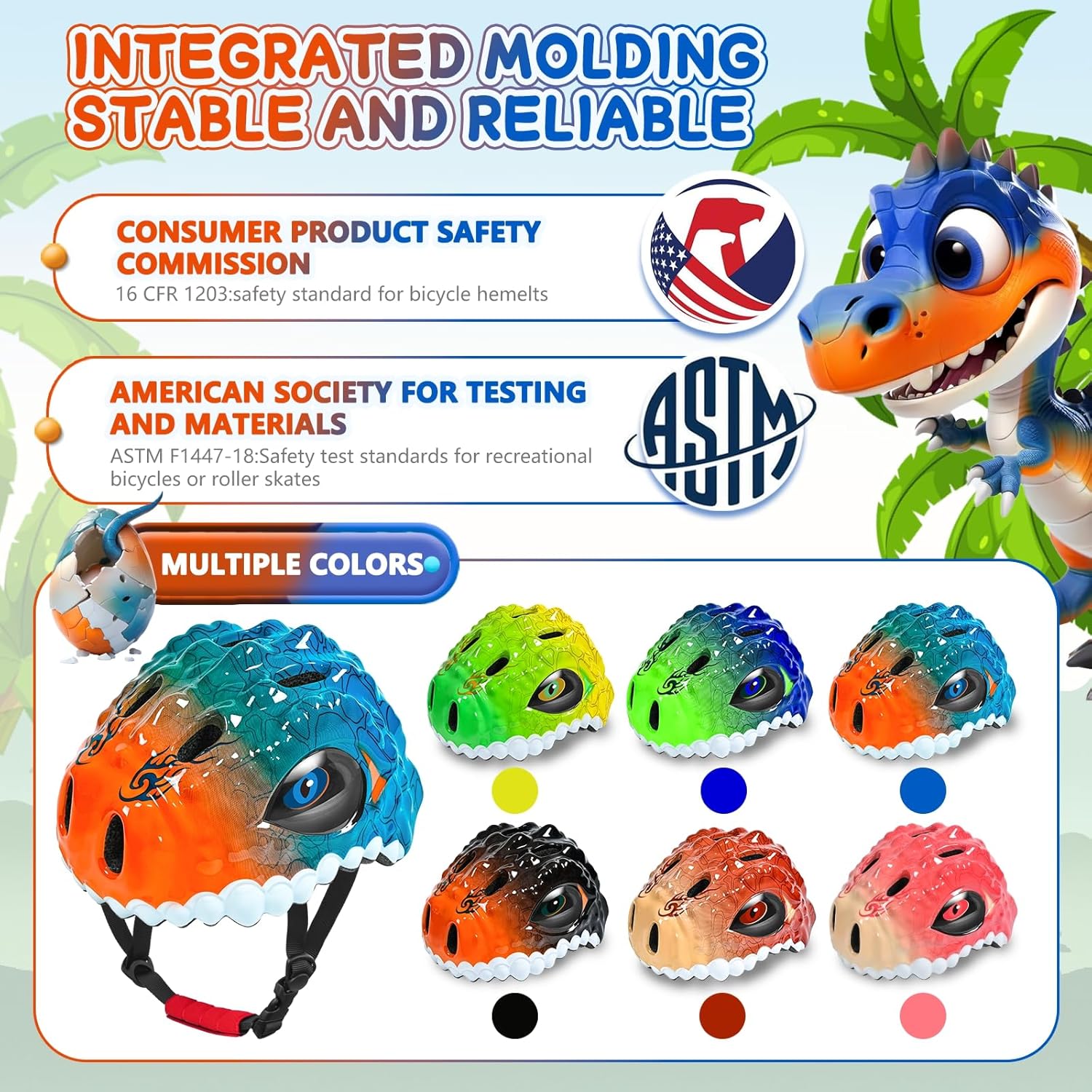 - 【LIGHTWEIGHT AND ADJUSTABLE】Kids bike helmet adopts one-piece molding technology, and the weight of only 240 grams makes children feel comfortable to wear for a long time. Suitable for head circumference: 48-54cm/18.9-21.2 inches; equipped with an adjustable head circumference dial and chin strap, it can be adjusted according to the growth of the child to provide the child with maximum comfort and fit.