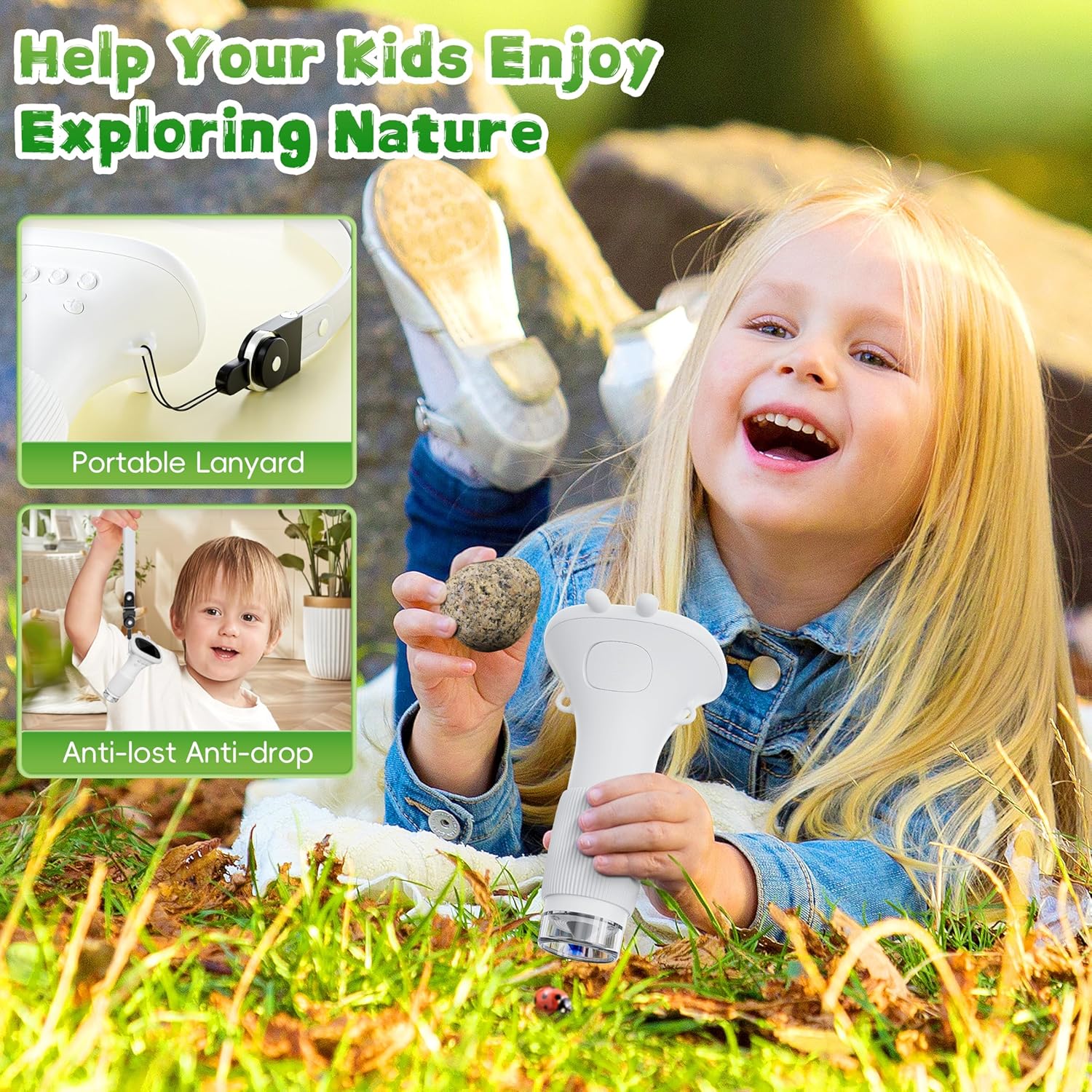 - Portable mini microscope: this portable microscope with removable cute screen protector and 50cm lanyard, easy to carry while drop-proof and loss-proof, so that children can explore science anytime, anywhere, without losing this cute toy; lightweight overall design, suitable for children's hands, adding more fun and convenience for children's scientific discovery