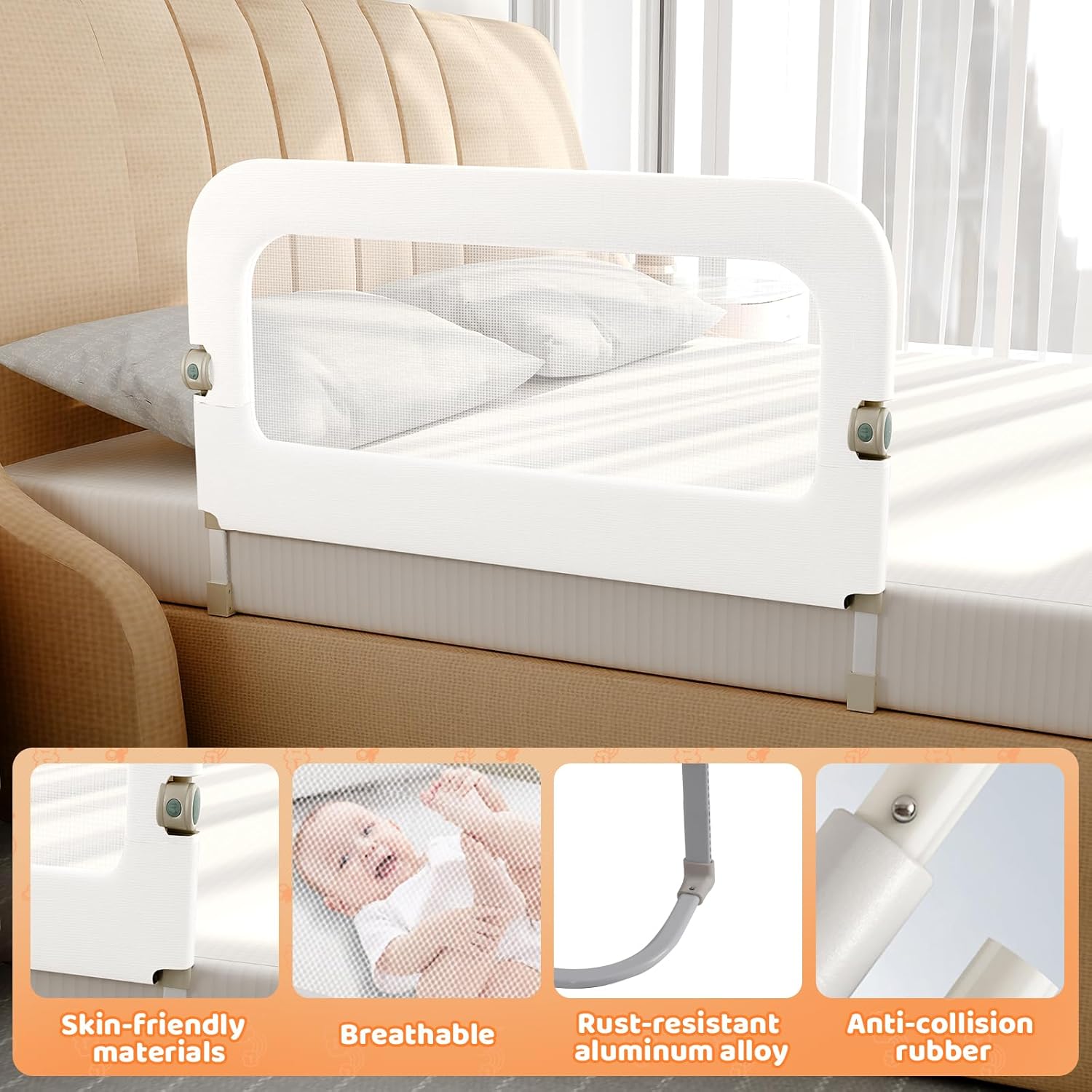 - 【BREATHABLE & COMFORTABLE】- Our toddler bed rails are made of secure, soft and tear-resistant fabric. The breathable and visible mesh keeps your baby cool and allows you to monitor them.