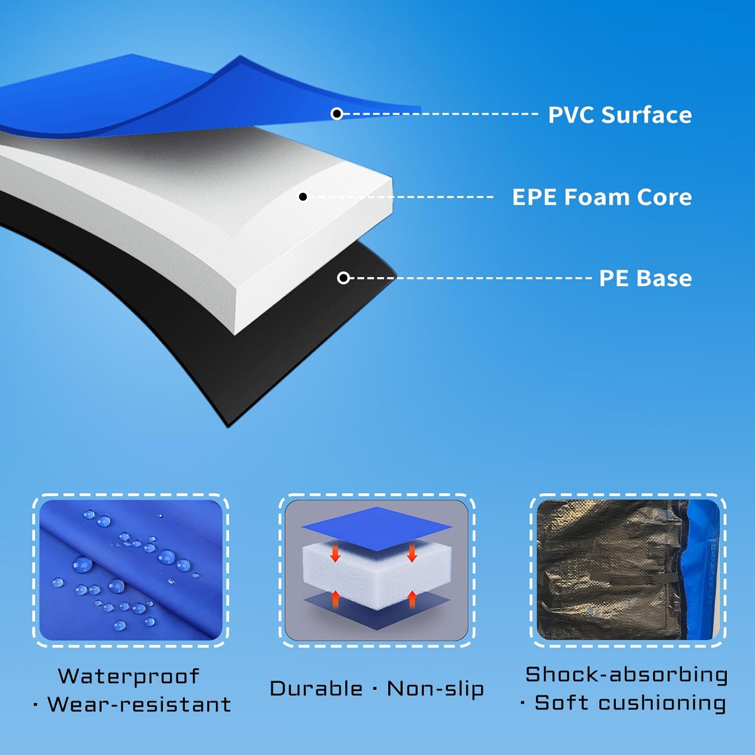 - 【PREMIUM MATERIAL】The outer layer shell is manufactured with high density PVC on top and heavy-duty PE on the bottom, 0.6 inch high-density EPE foam inside