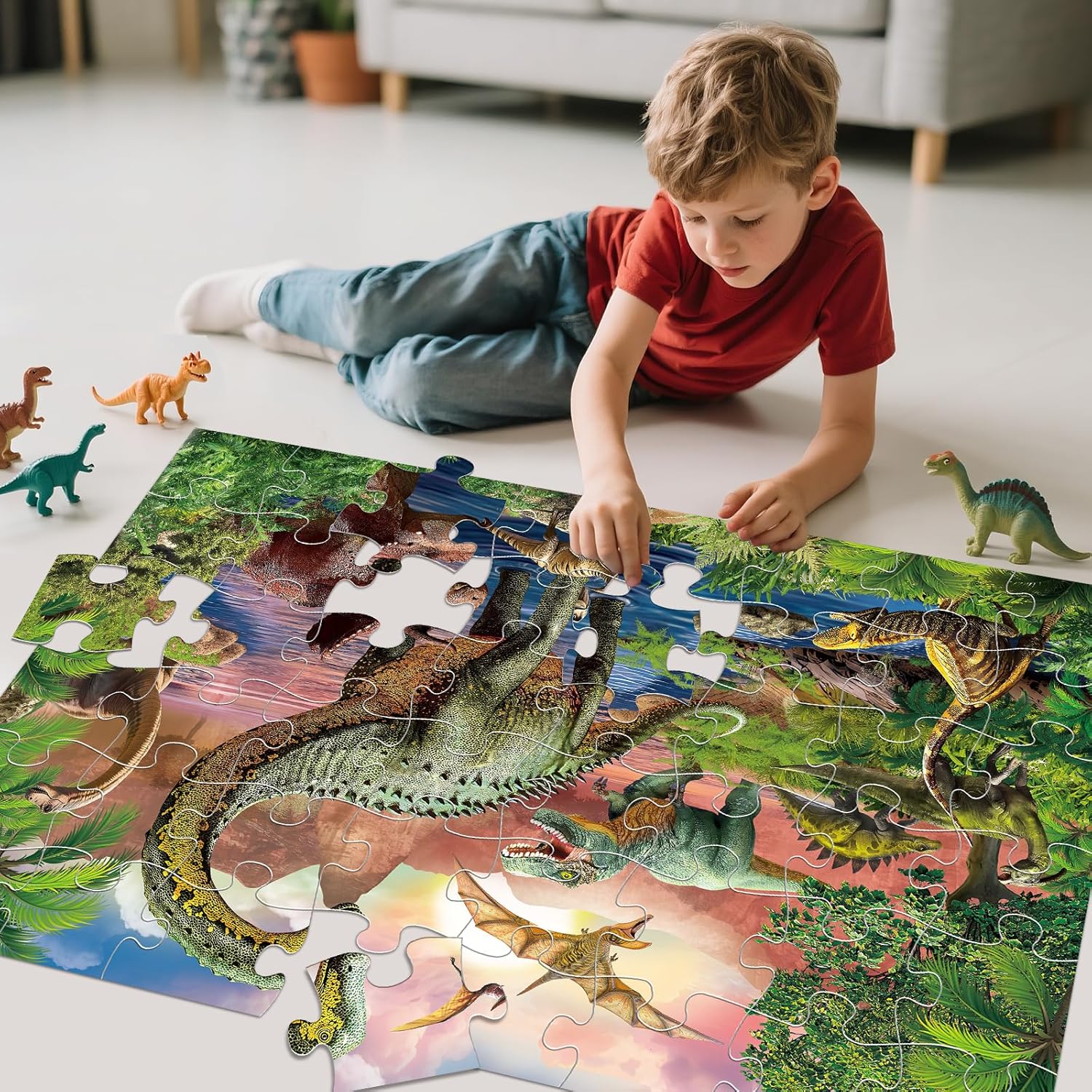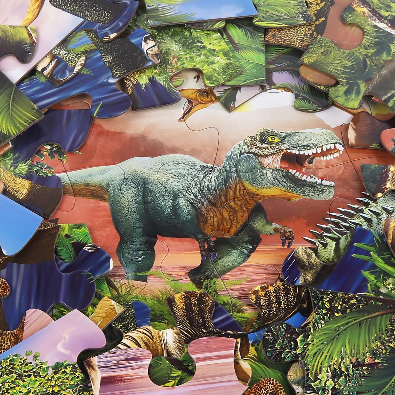 - Educational Dinosaur Theme: Dive into the world of the Jurassic jungle with this puzzle.It vividly recreates a Jurassic jungle scene, complete with intricate details like waterfalls and interactions among ferns and a dinosaur family. This design effectively stimulates children's natural curiosity about prehistoric creatures, making learning about dinosaurs an exciting adventure.Completing the puzzle gives children a sense of achievement, boosts their confidence, and enhances their learning ability