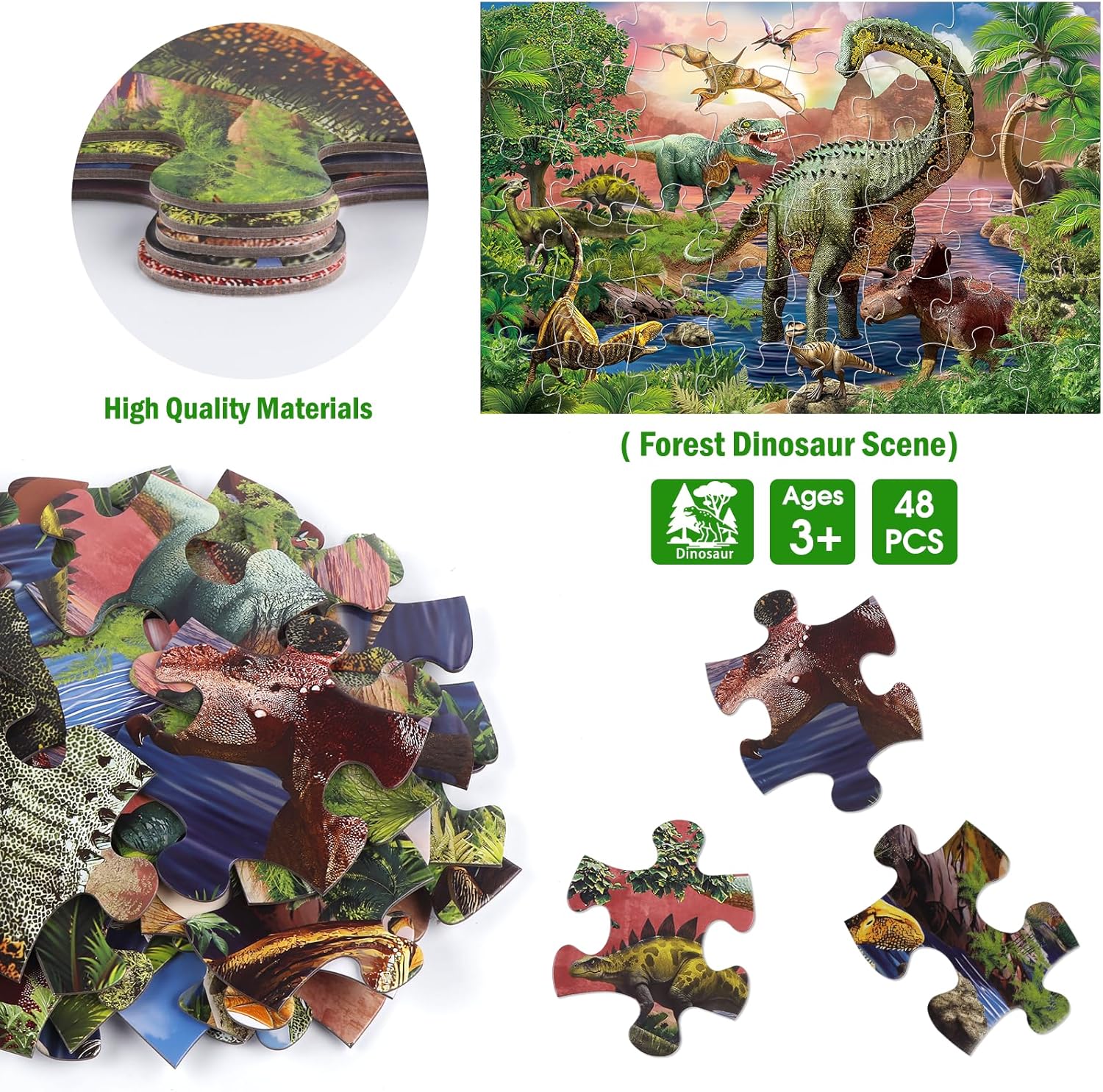 Jumbo Floor Puzzle for Kids,48 Piece Forest Dinosaur Large Jigsaw Puzzles, Fun Educational Preschool Learning Toy for Toddlers Ages 3-5,Gift for Boy Girl Ages 4-8