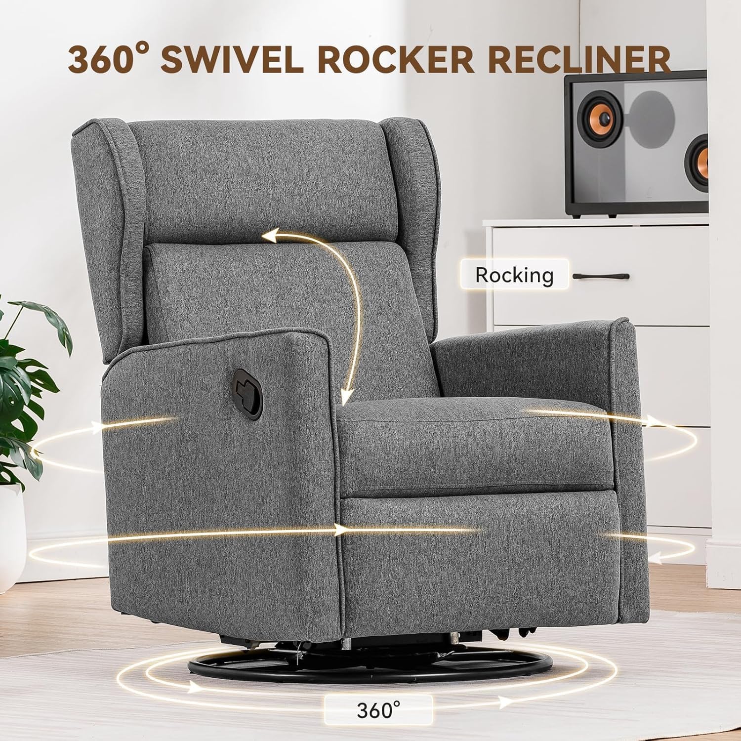 COMHOMA Rocking Recliner Chair,Swivel Glider Reclining Single Sofa Manual Rocker Recliners,Nursery Rocking Chairs with Upholstered Seating for Living Room Office(Gray)