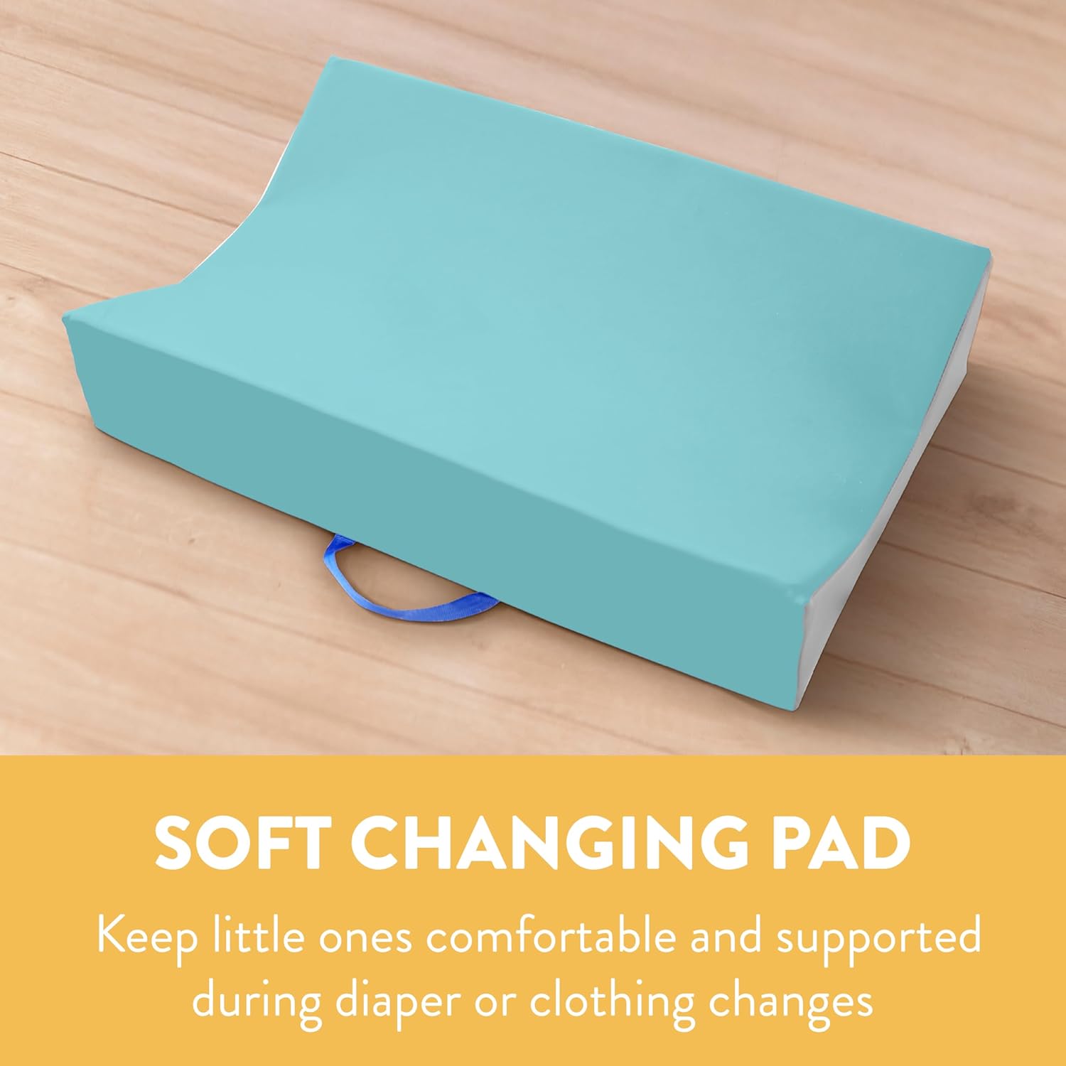 - Changing Pad: Soft contoured foam pad provides a cozy, secure spot for diaper changes, offering comfort at home or on the go; lightweight design fits easily under a bed or sofa for convenient storage